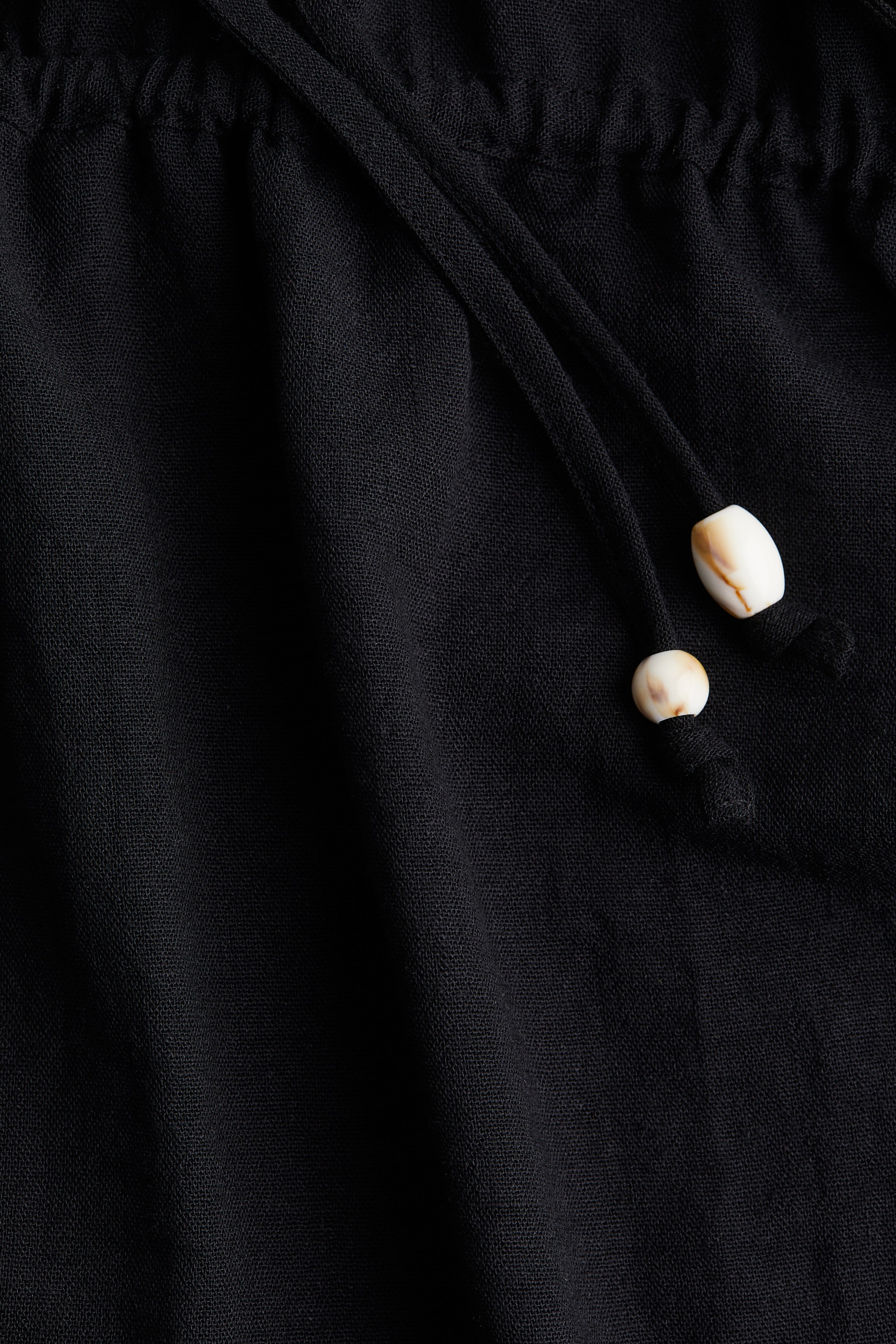 Loose-fit beach kaftan in airy, woven fabric. Low-cut V-neck, drawstrings at front to tie at sides of waist, and short sleeves.
