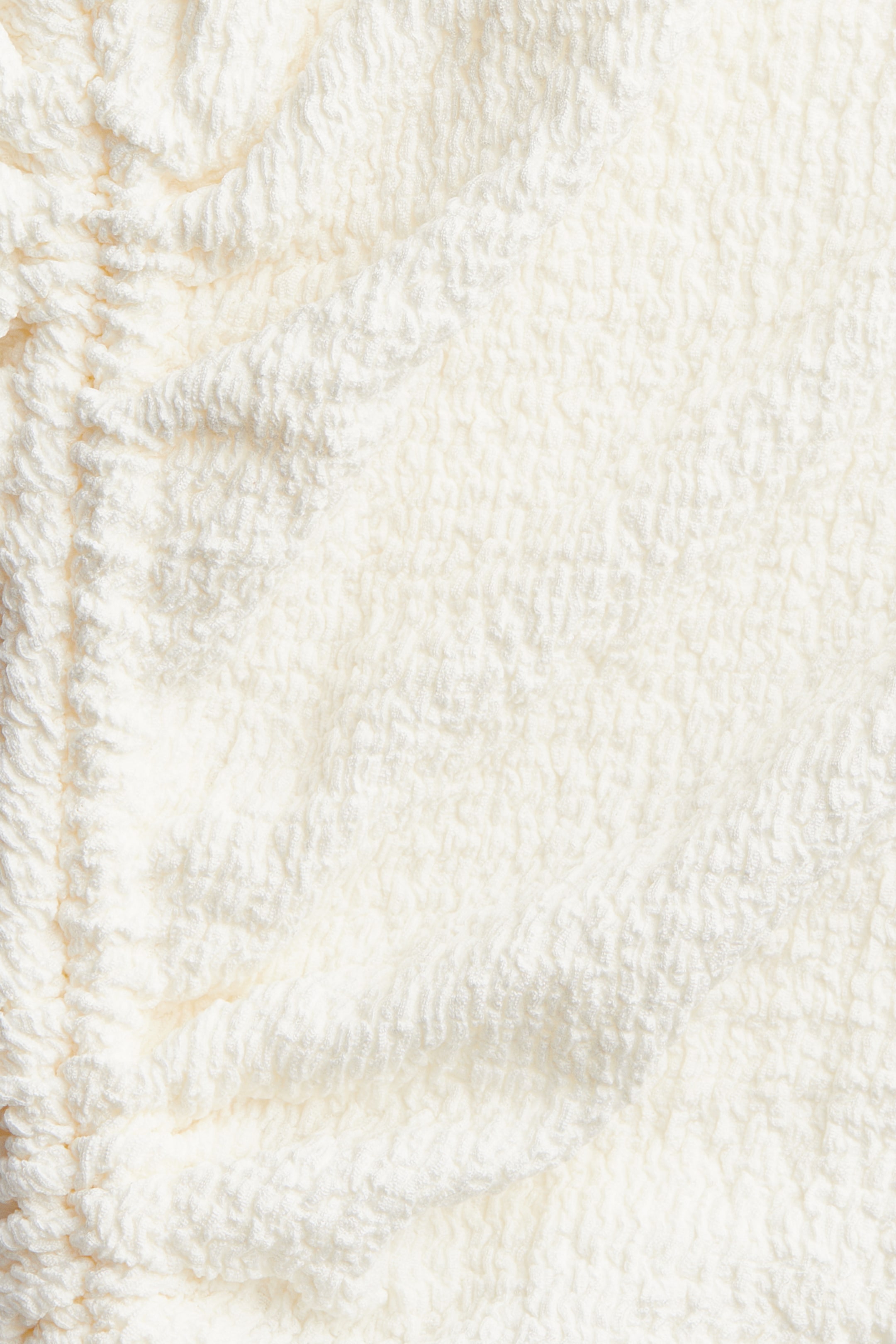 Fitted crop top in textured jersey with a boat neck. Drawstring at one side and on one shoulder for a draped effect.