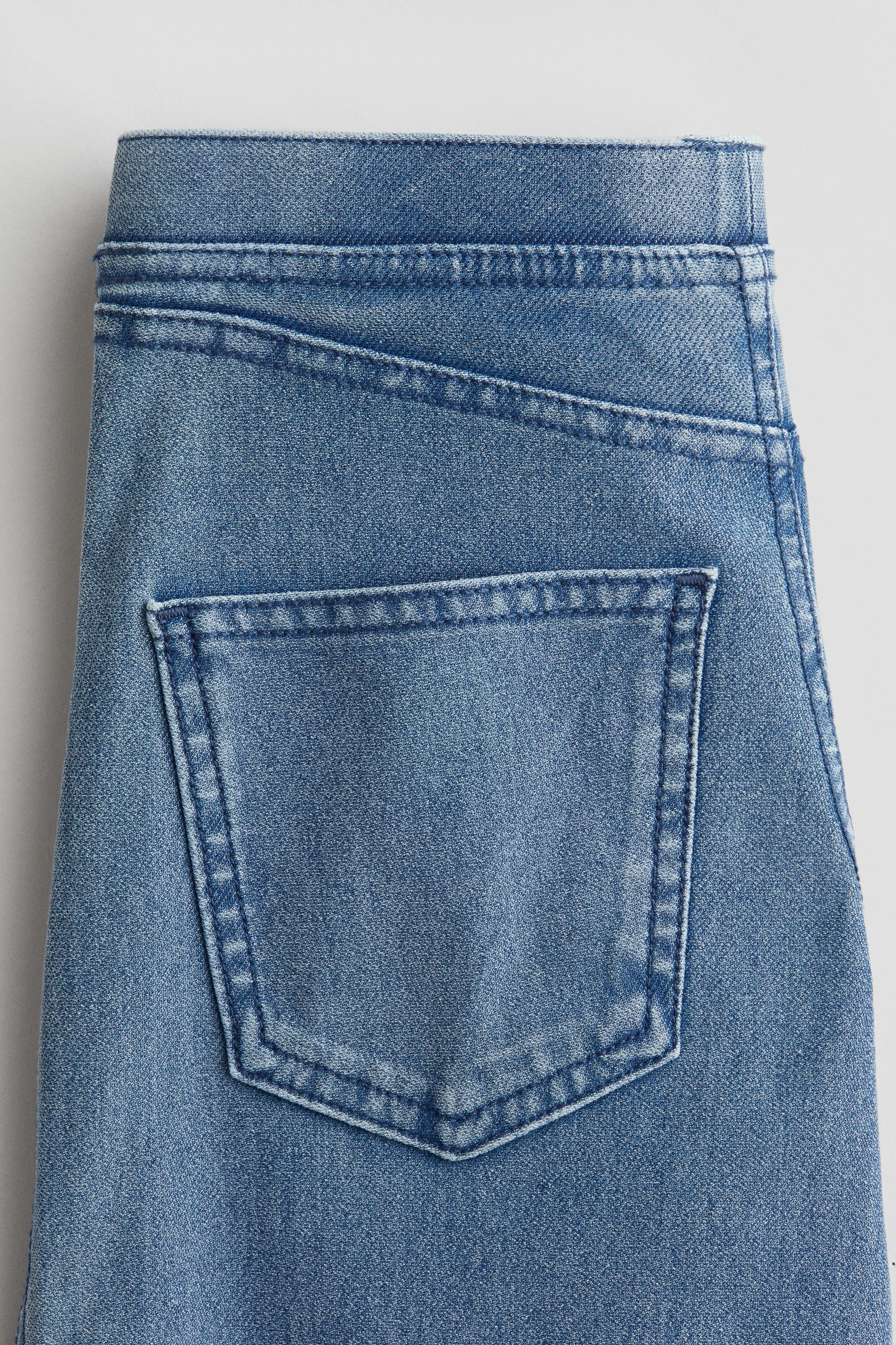 Pants in thick, denim-look jersey with a printed pattern. Elasticized waistband, mock fly, and wide legs. Decorative front pockets and regular back pockets.