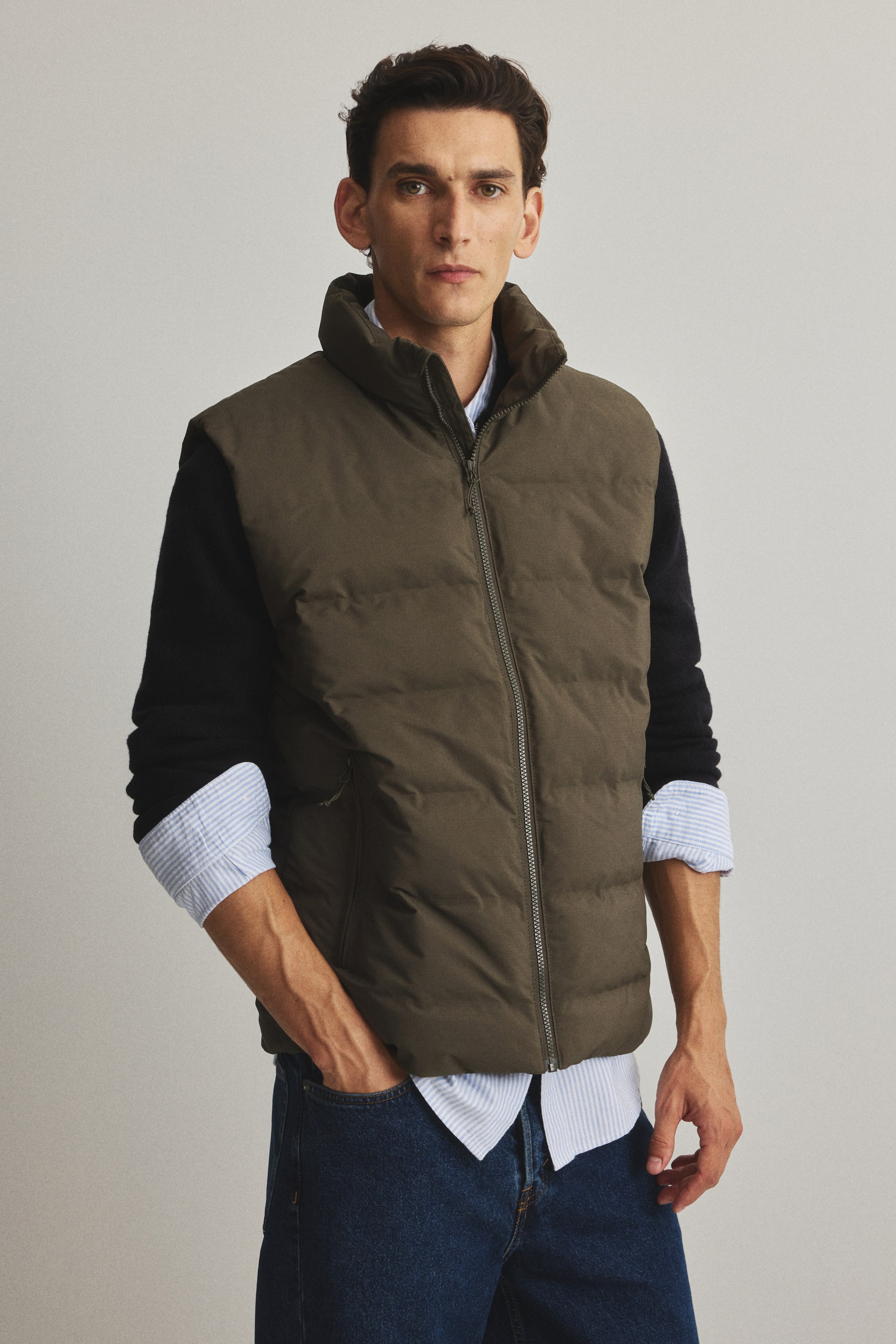 Padded, quilted, regular-fit vest in windproof, water-repellent woven fabric. Comfortable, classic silhouette. Stand-up collar, zipper at front with anti-chafe chin guard, side pockets with zipper, and an inner pocket. Lined.