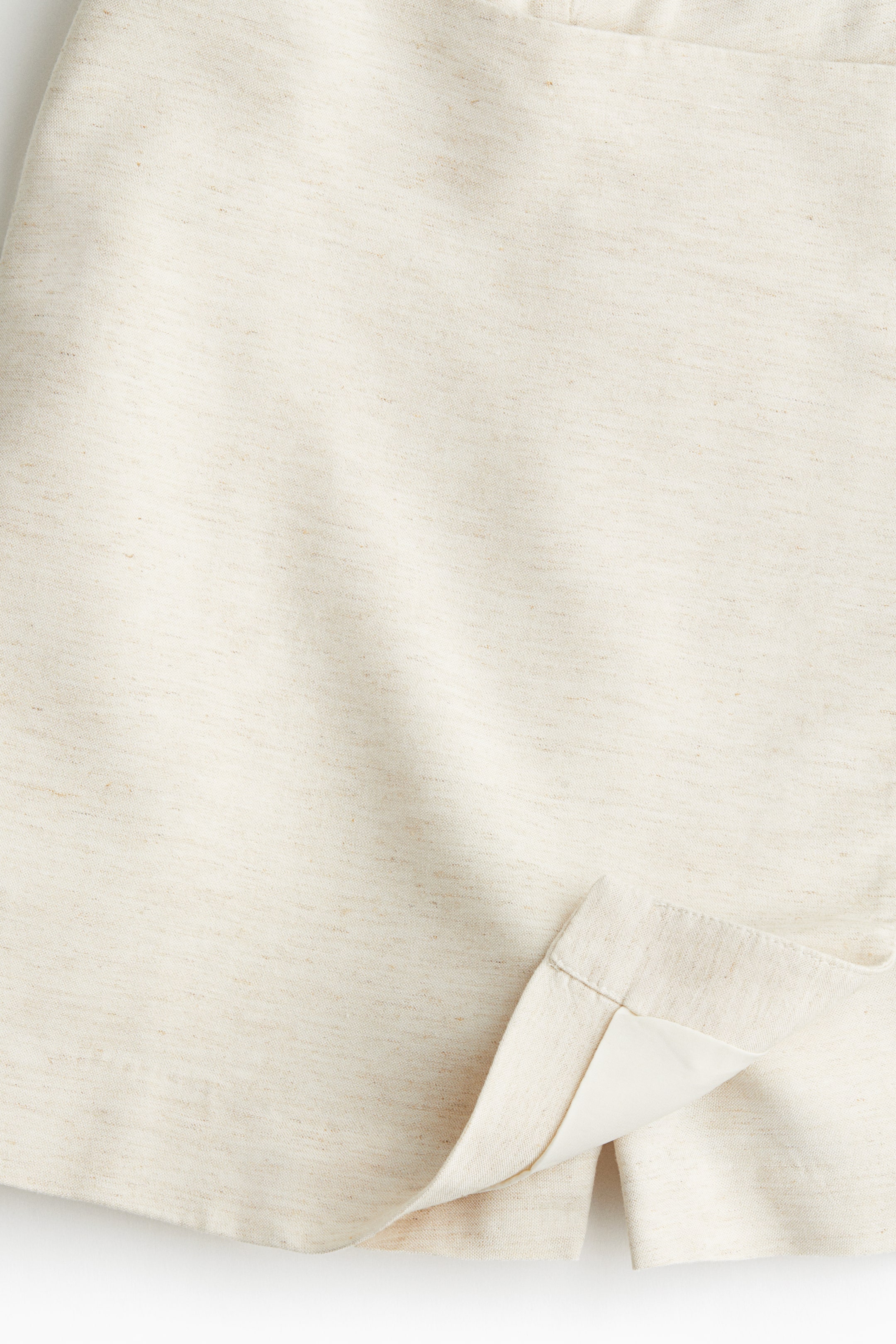 Short skort in a woven linen blend. High waist, concealed zipper at one side, darts at back, and wrapover front with ties at one side. Lined.