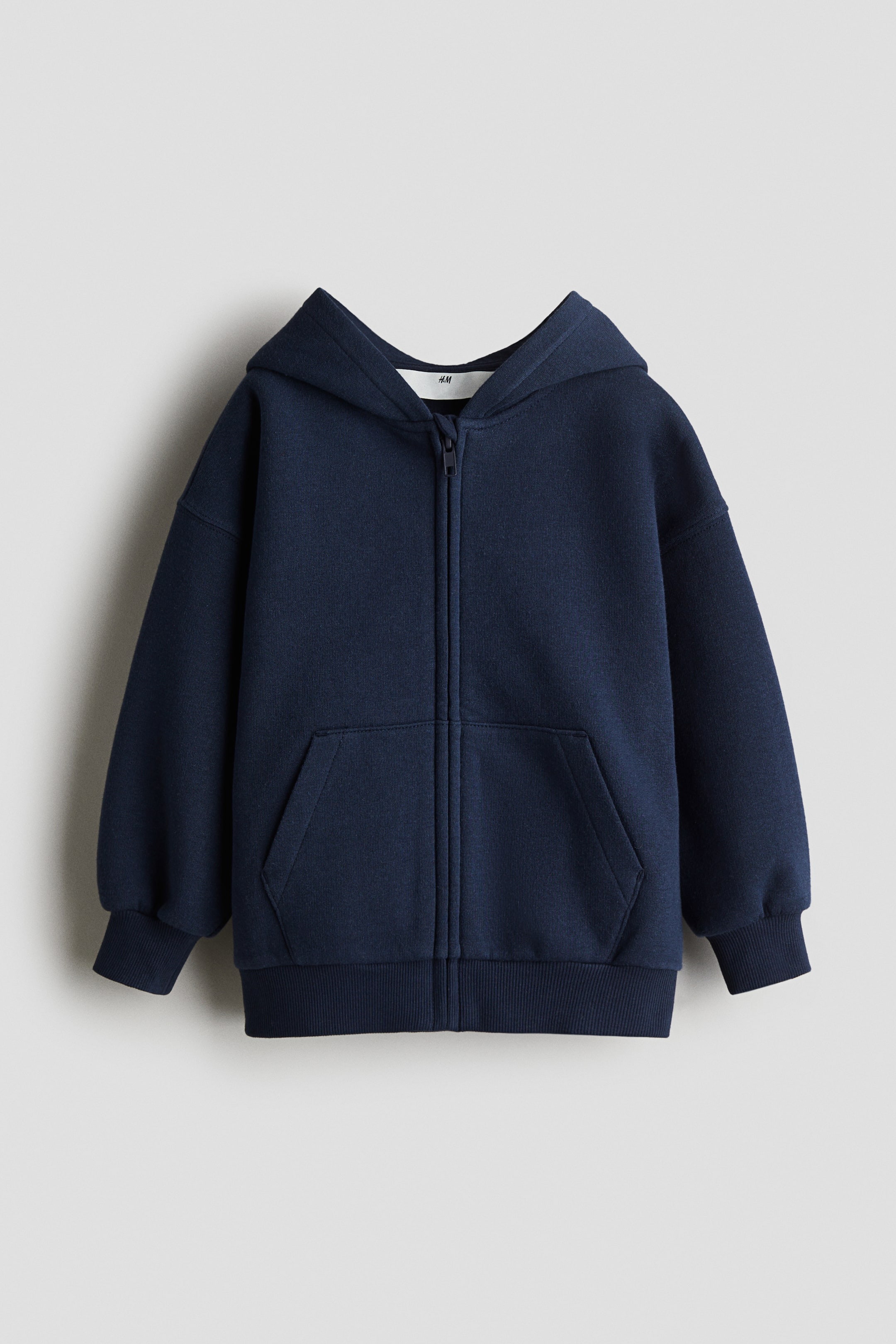 Oversized sweatshirt hoodie with a soft, brushed inside. Jersey-lined hood, concealed zipper at front with anti-chafe chin guard, and front pockets. Dropped shoulders, long sleeves, and ribbing at cuffs and hem.