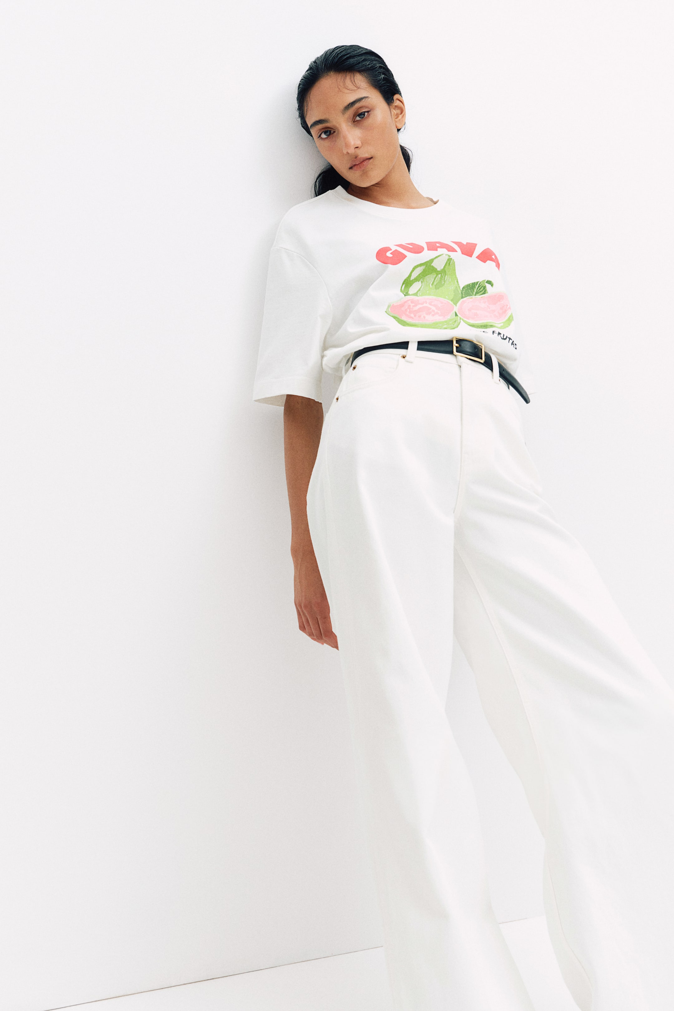 Loose-fit T-shirt in soft cotton jersey with a printed motif at front. Ribbed crew neck and dropped shoulders.