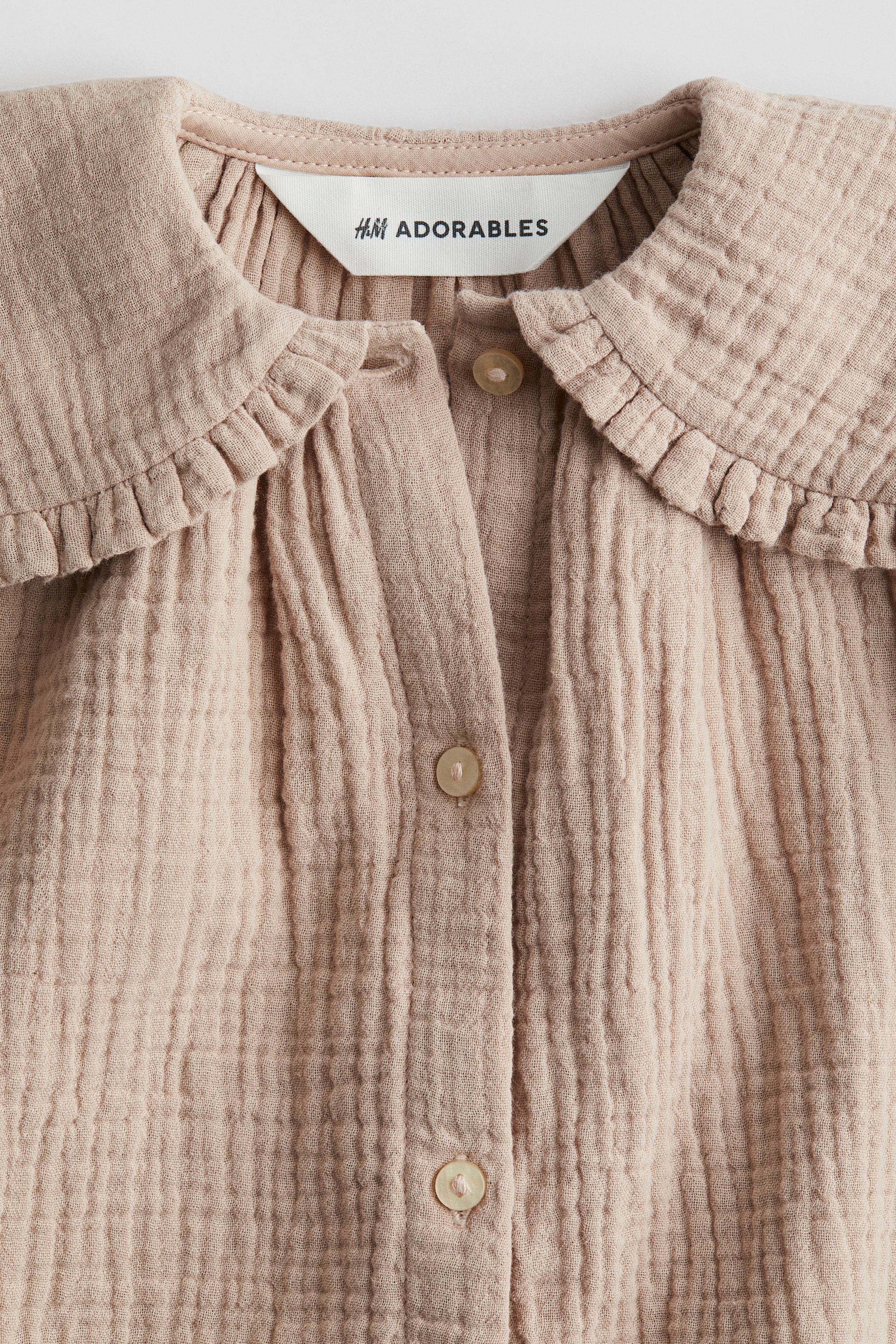H&M Adorables. Romper suit in soft muslin made from high-quality cotton with a printed pattern. Large, ruffle-trimmed collar, buttons at front, and narrow elastic at cuffs and leg openings. The H&M Adorables collection is a curated selection of high-comfort, quality pieces with a timeless appeal.