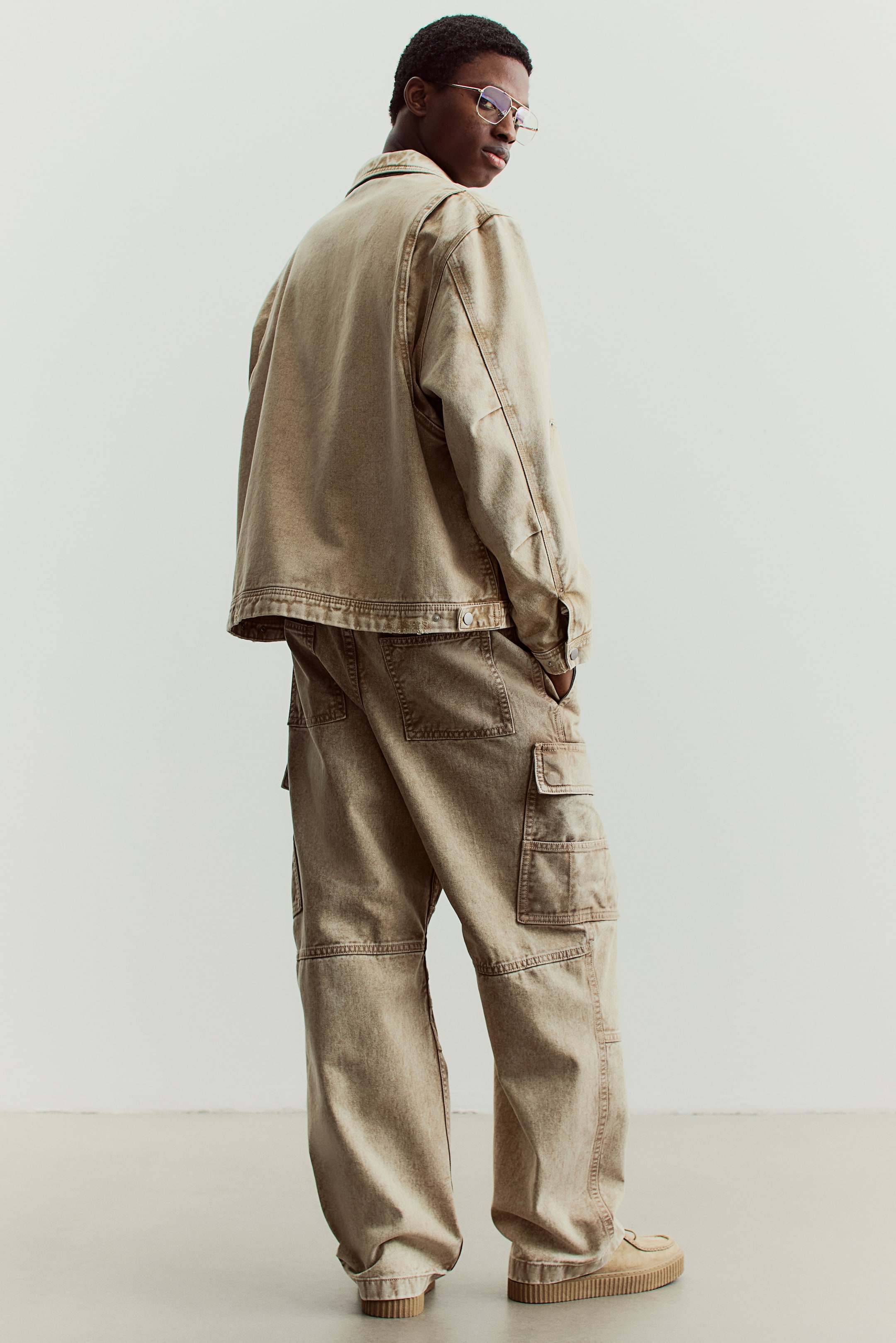 Loose-fit pants in soft cotton twill with a generous but not oversized silhouette. Zip fly with button, diagonal side pockets, open back pockets, and leg pockets with flap and snap fastener. Legs with seams and darts at knees.