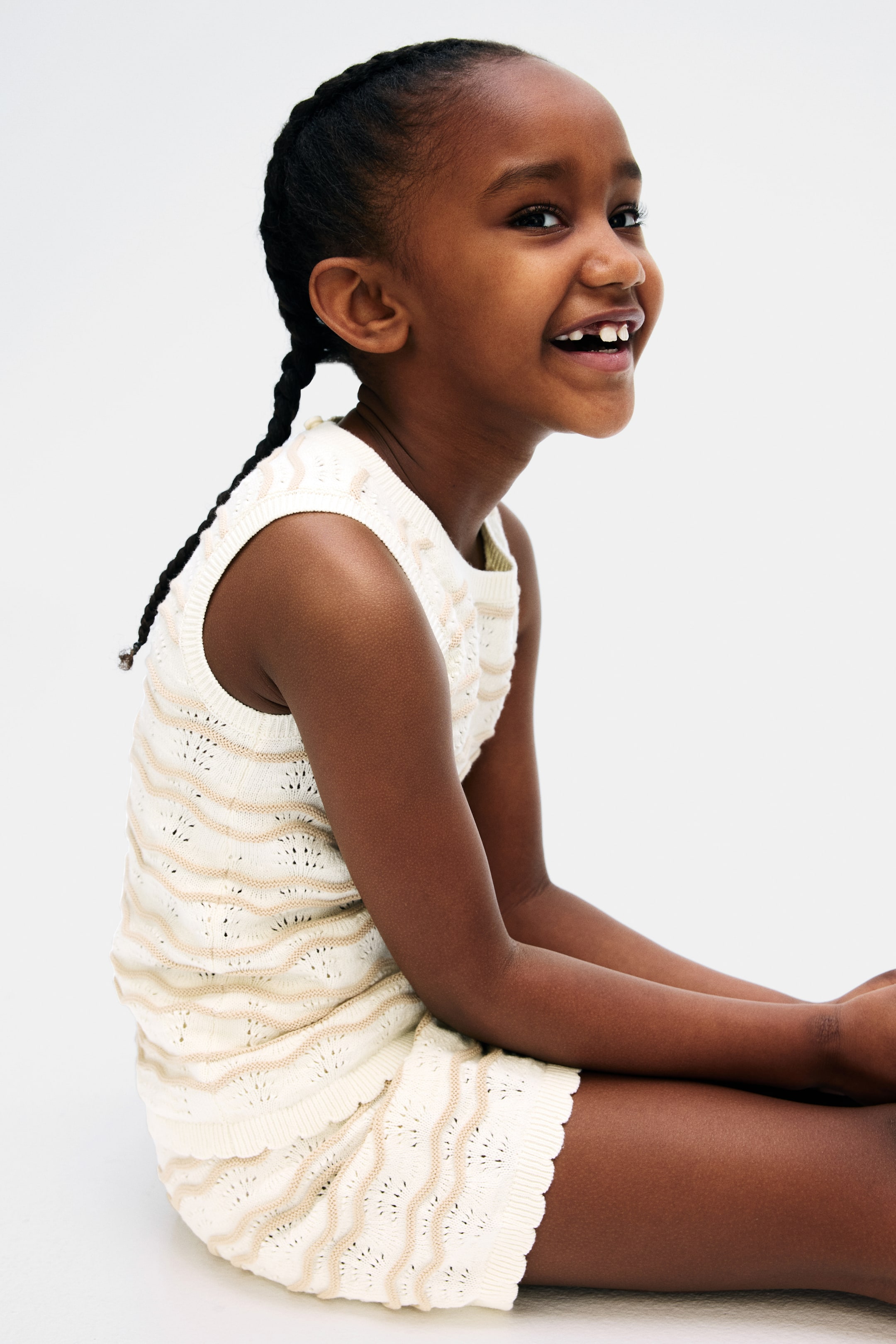 Pointelle-knit set in cotton with a sleeveless top and shorts, both with scalloped trim. Top with a round neckline, keyhole opening at back with a button, and ribbing at neckline, armholes, and hem. Shorts with an elasticized waistband and ribbed hems.