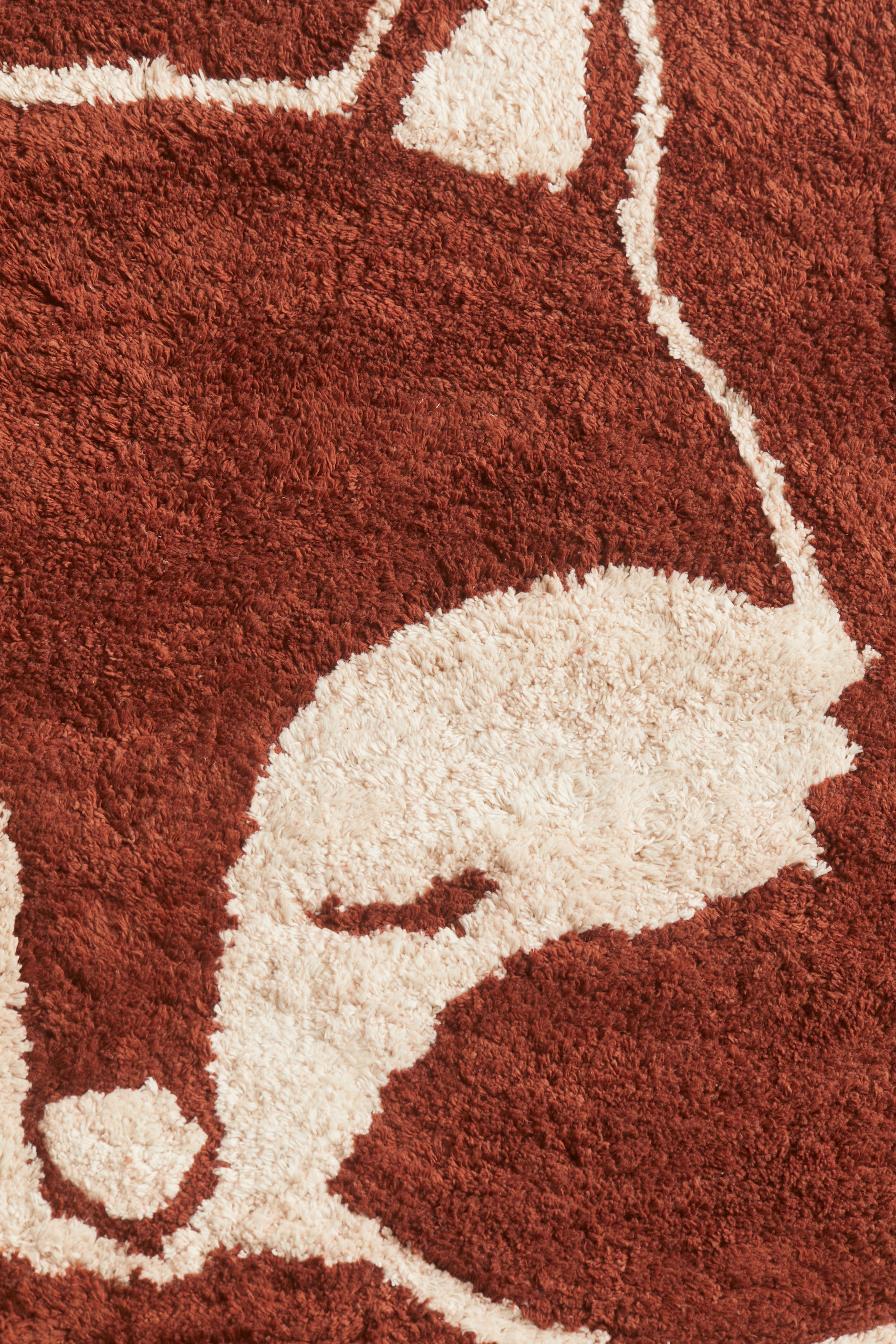 Round, cute animal-shaped rug in tufted cotton. Non-slip protection at back.