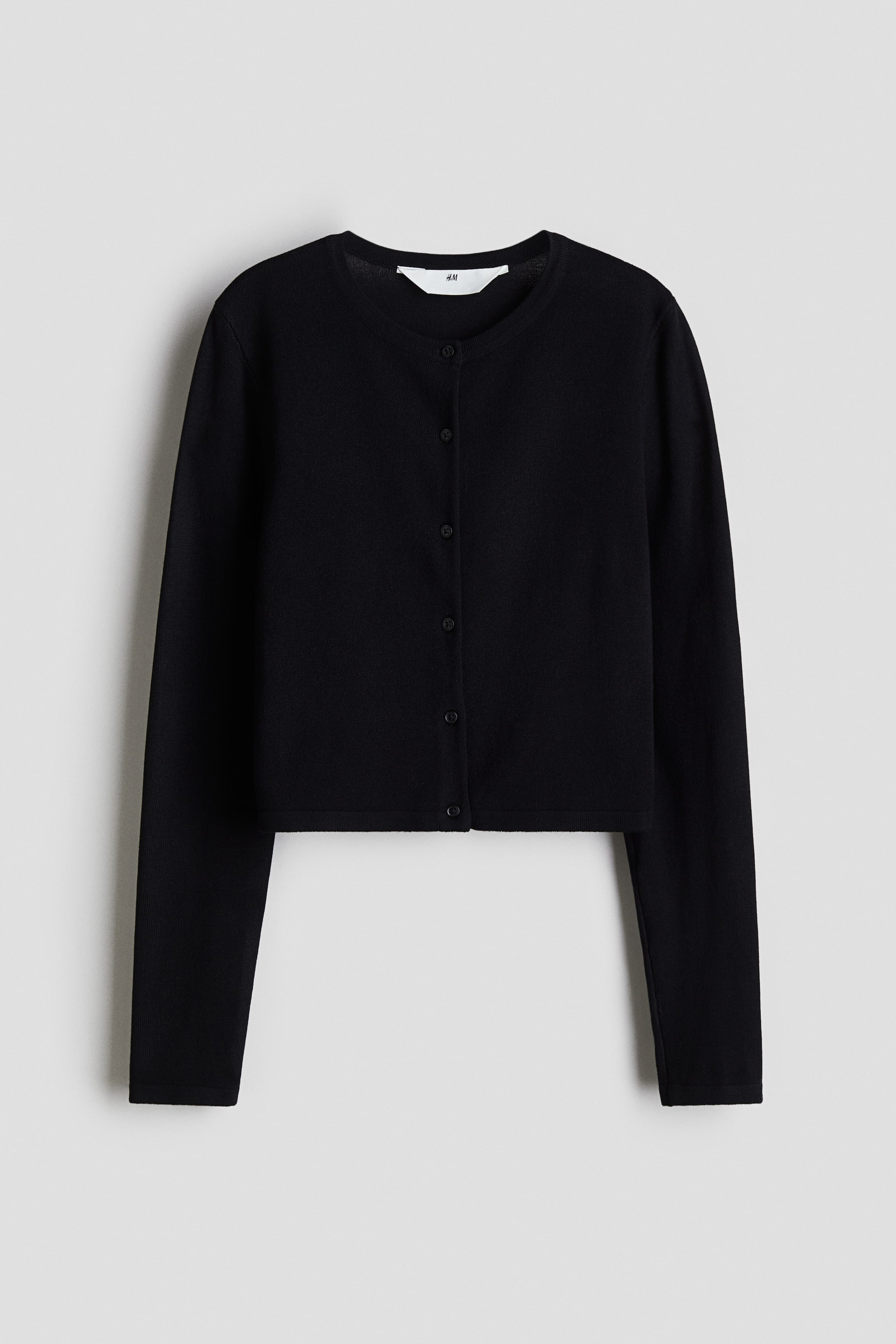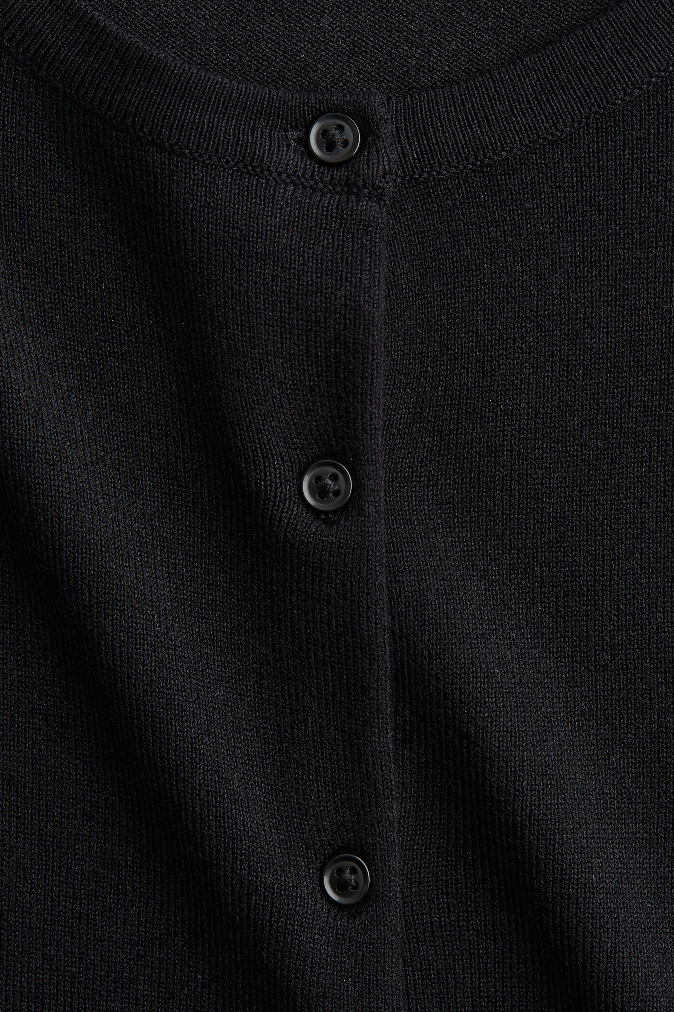 Fine-knit cardigan in a soft viscose blend with a round neckline. Buttons at front.