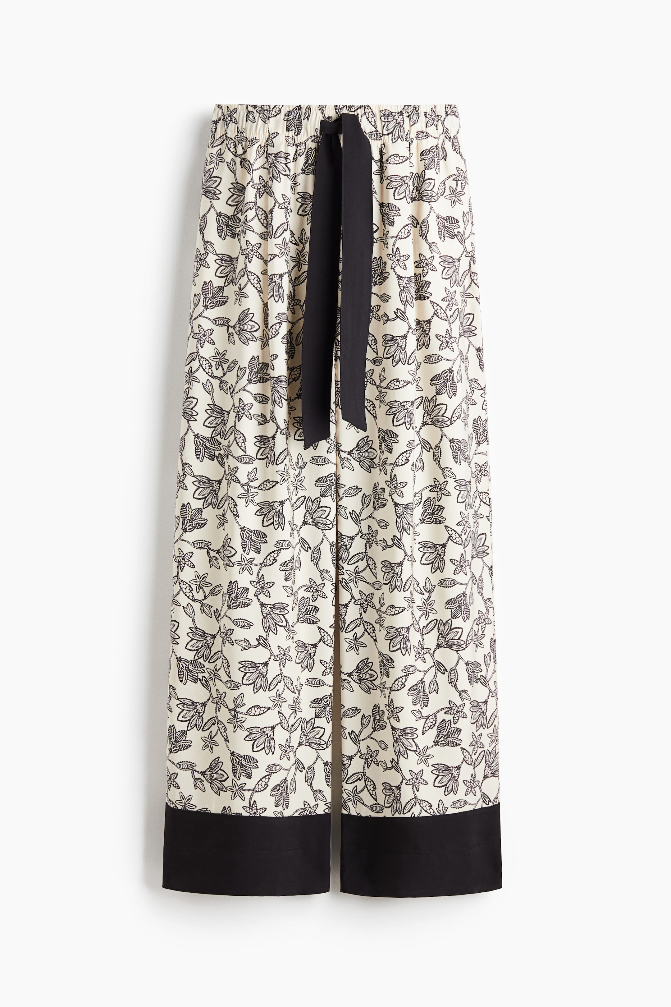 Pants in modal-blend twill. High waist, elasticized waistband, and a wide drawstring. Discreet side pockets, a mock welt back pocket, and wide legs.