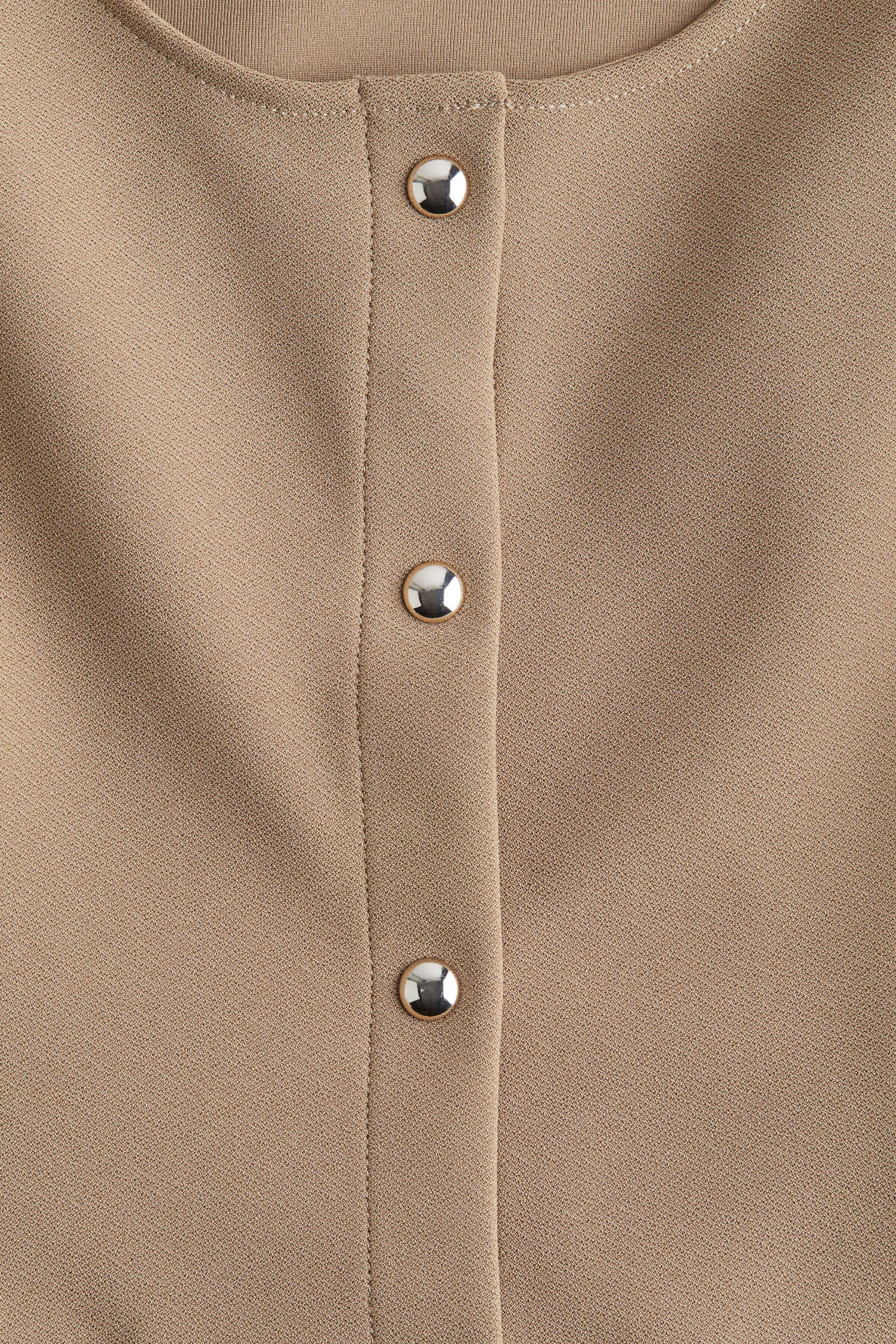 Short-sleeved cardigan in thick jersey with shaping seams at front and back. Scoop neck, snap fasteners at front, and decorative front pocket flaps.