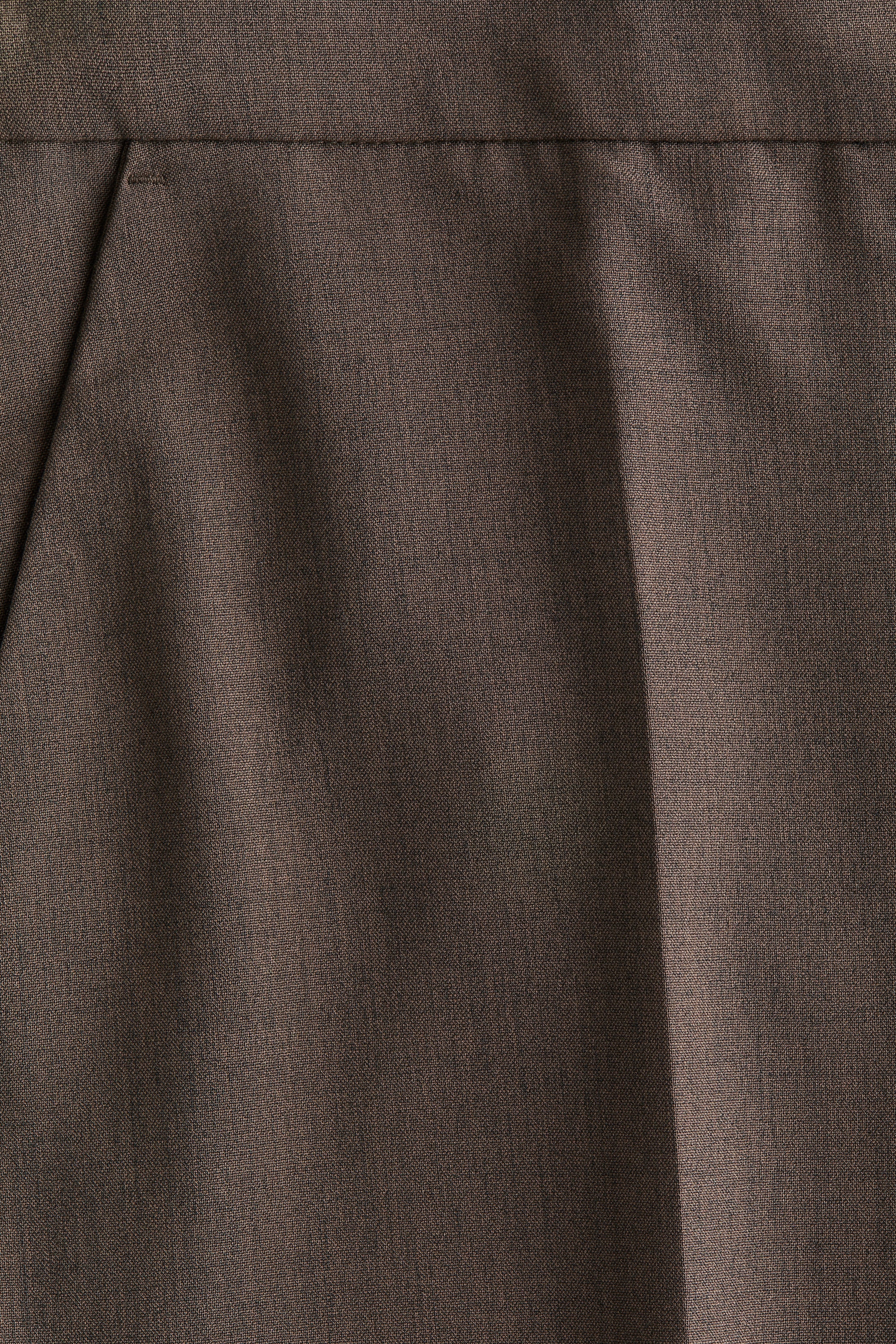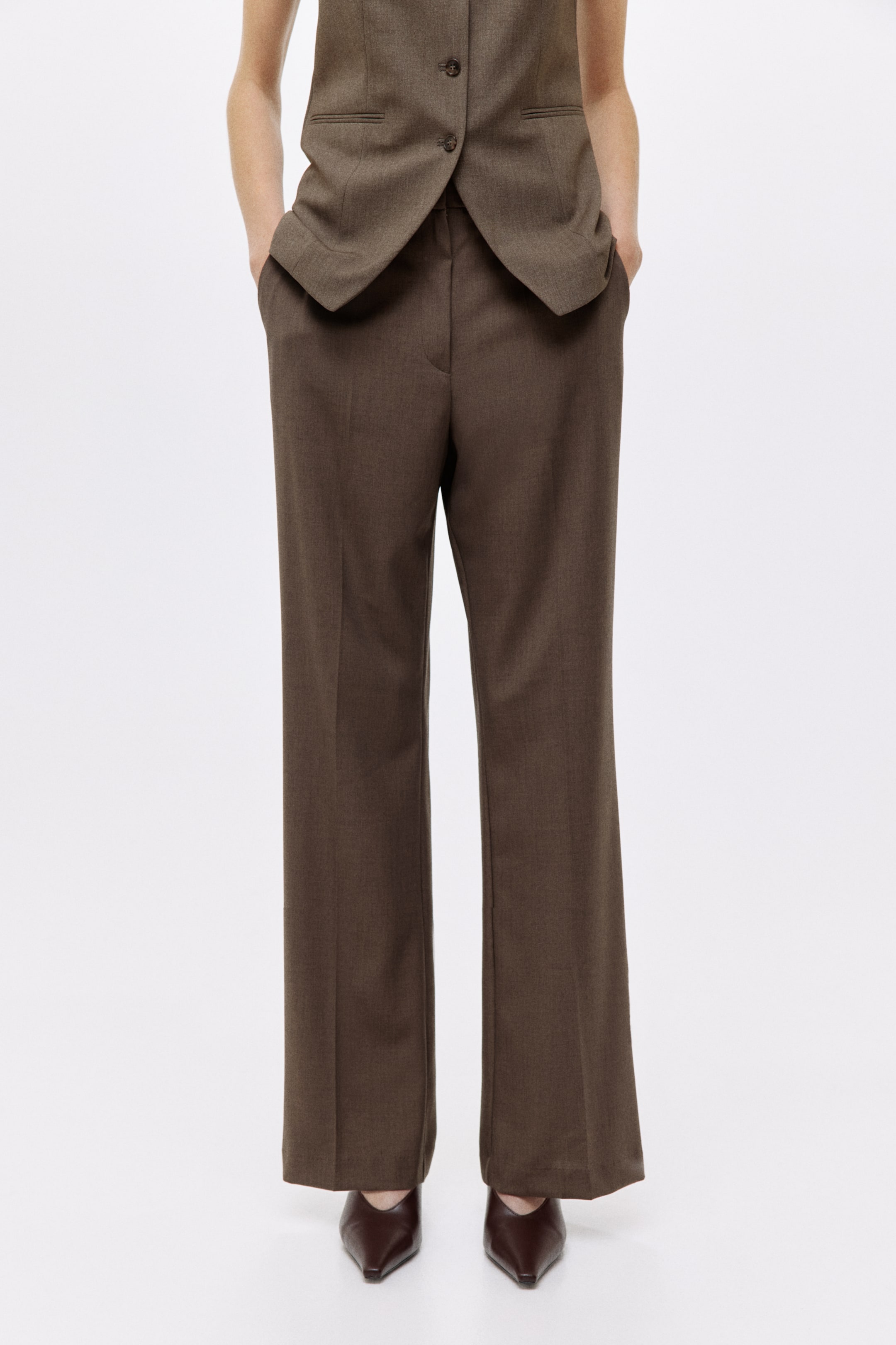 Pants in woven fabric. High waist, zip fly with concealed button and hook-and-bar fastener, and diagonal side pockets. Straight legs with creases at front and back.