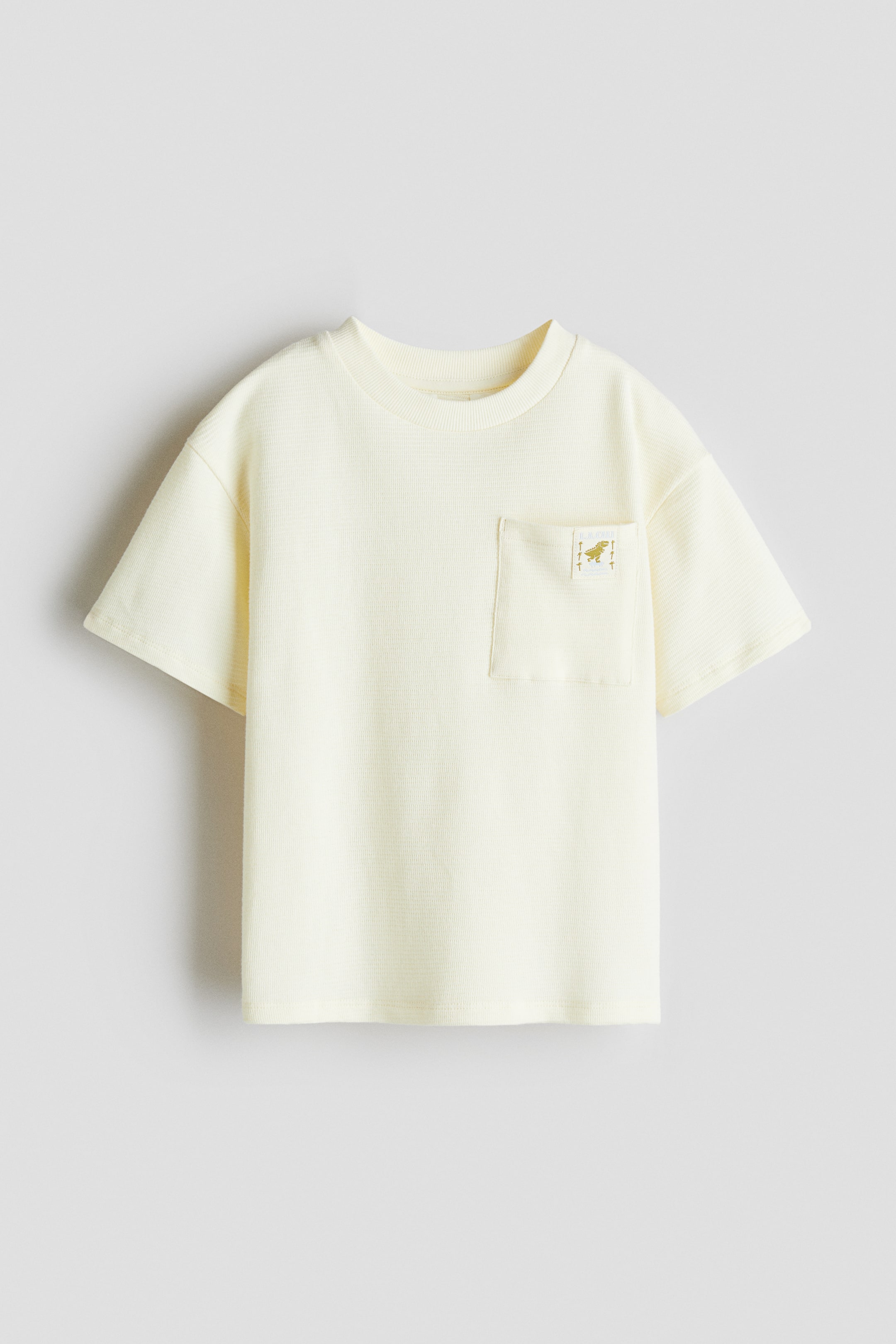 Loose-fit T-shirt in soft jacquard jersey made from cotton. Round, ribbed neck, dropped shoulders, and a patch chest pocket with a small appliqué.