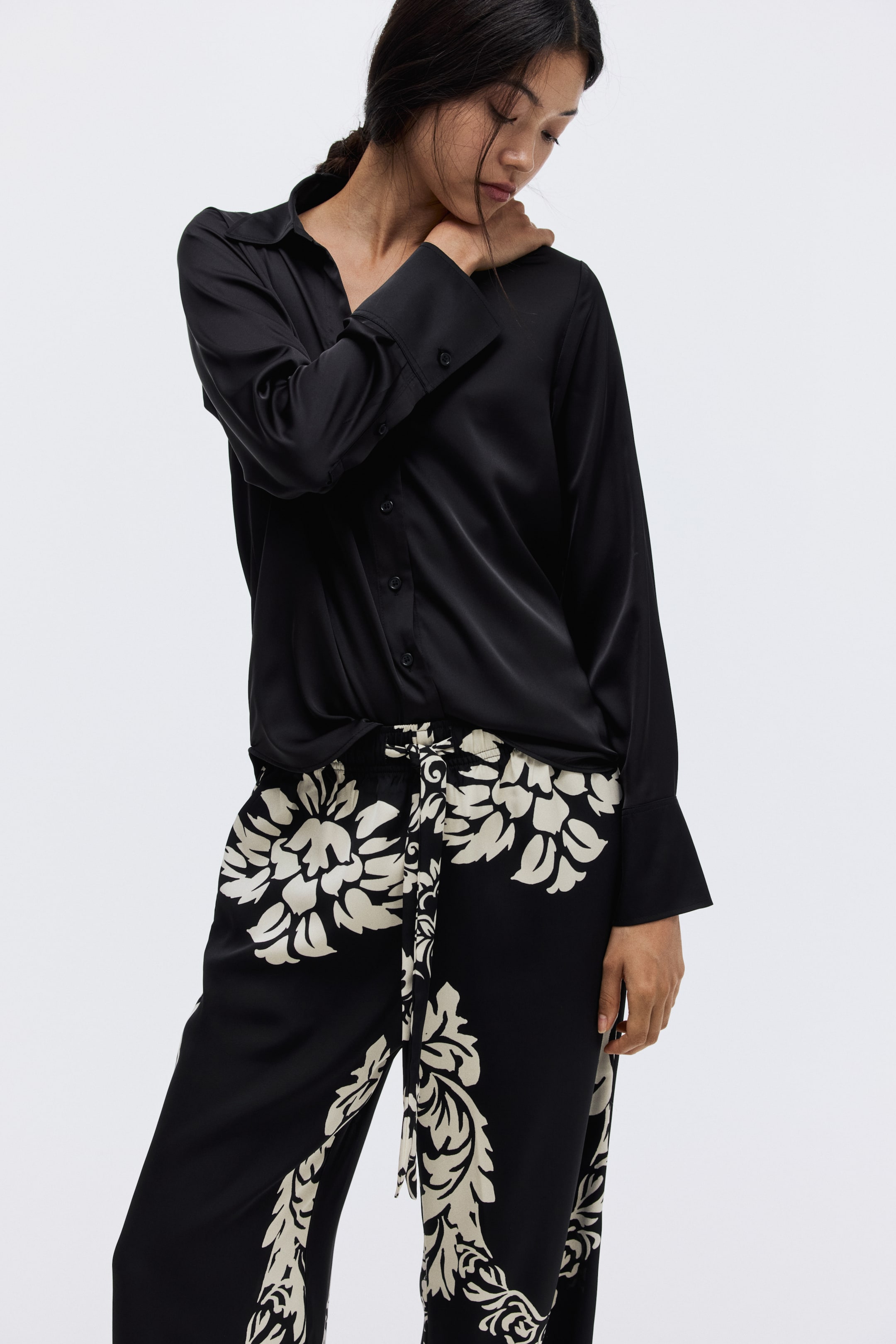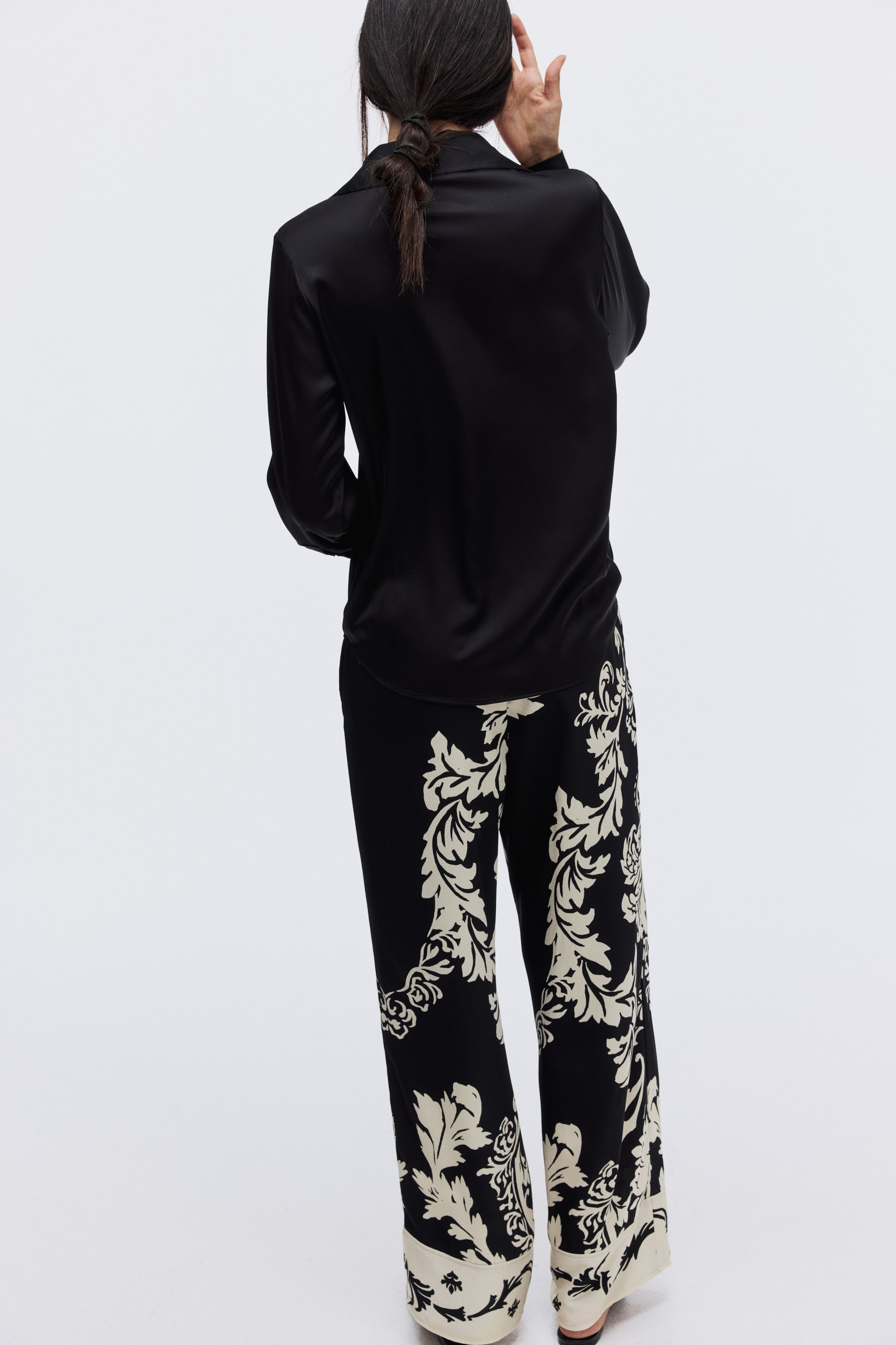 Loose-fit pants in twill. High waist, wide drawstring and covered elastic at waistband, and discreet side pockets. Wide legs.