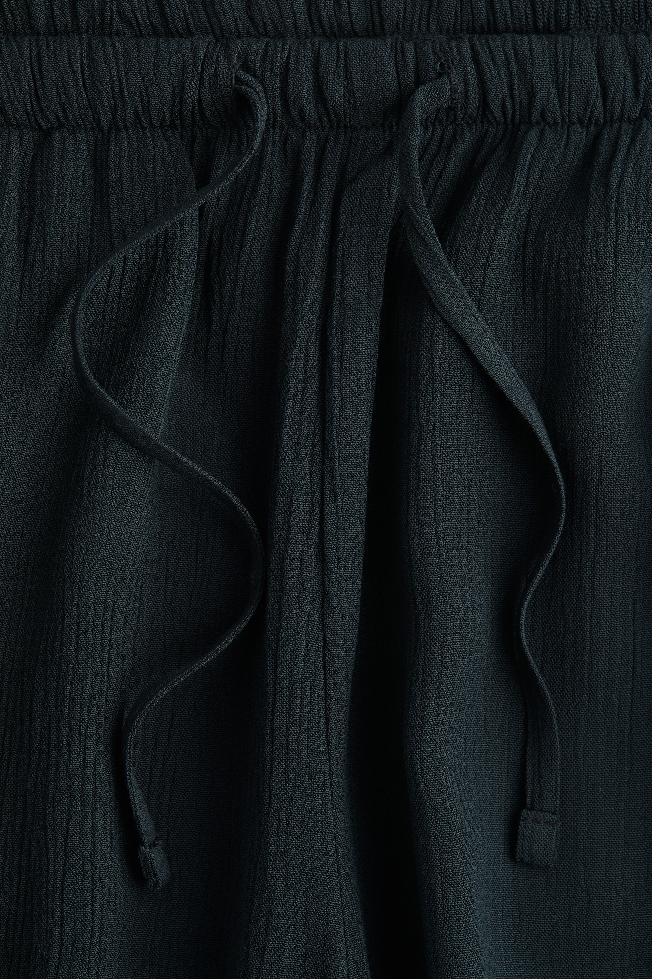 Pants in soft, crinkled woven fabric. Loose fit through hip and thigh. Elasticized, drawstring waistband and diagonal front pockets. Straight legs.