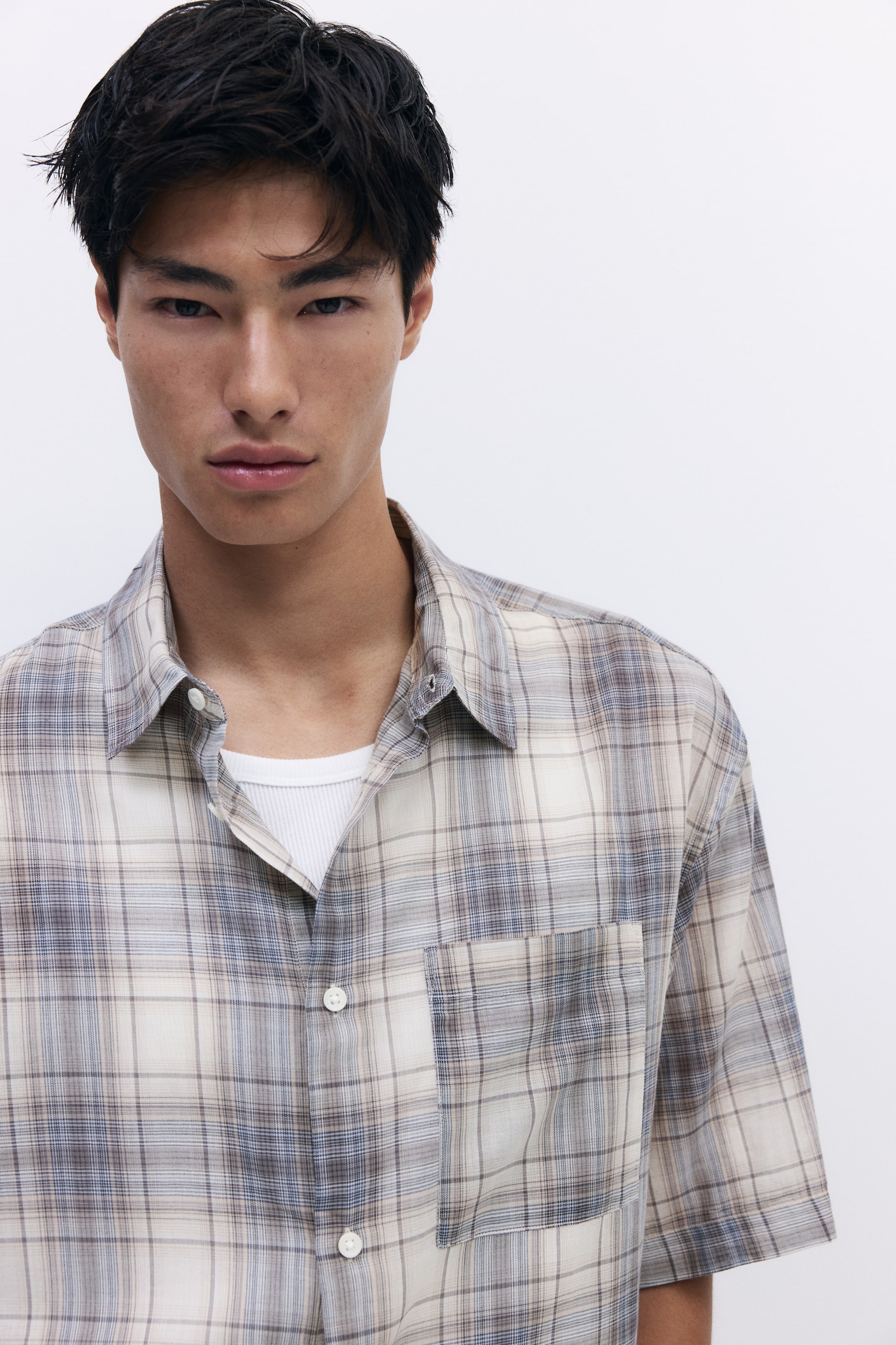 Relaxed-fit shirt in airy woven cotton with a casual but not oversized silhouette. Turn-down collar, buttons without placket, and a yoke at back. Patch chest pocket and short sleeves.