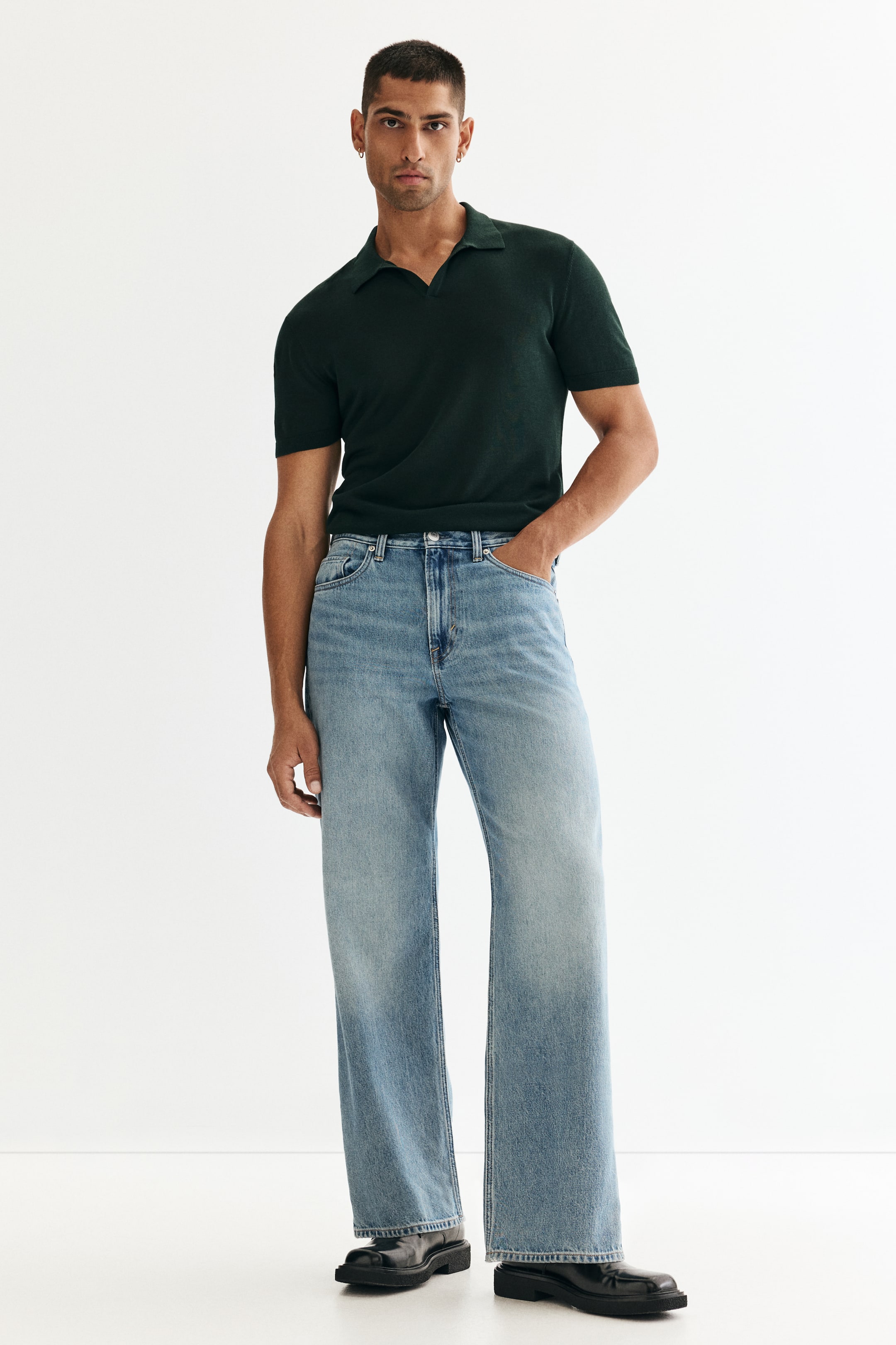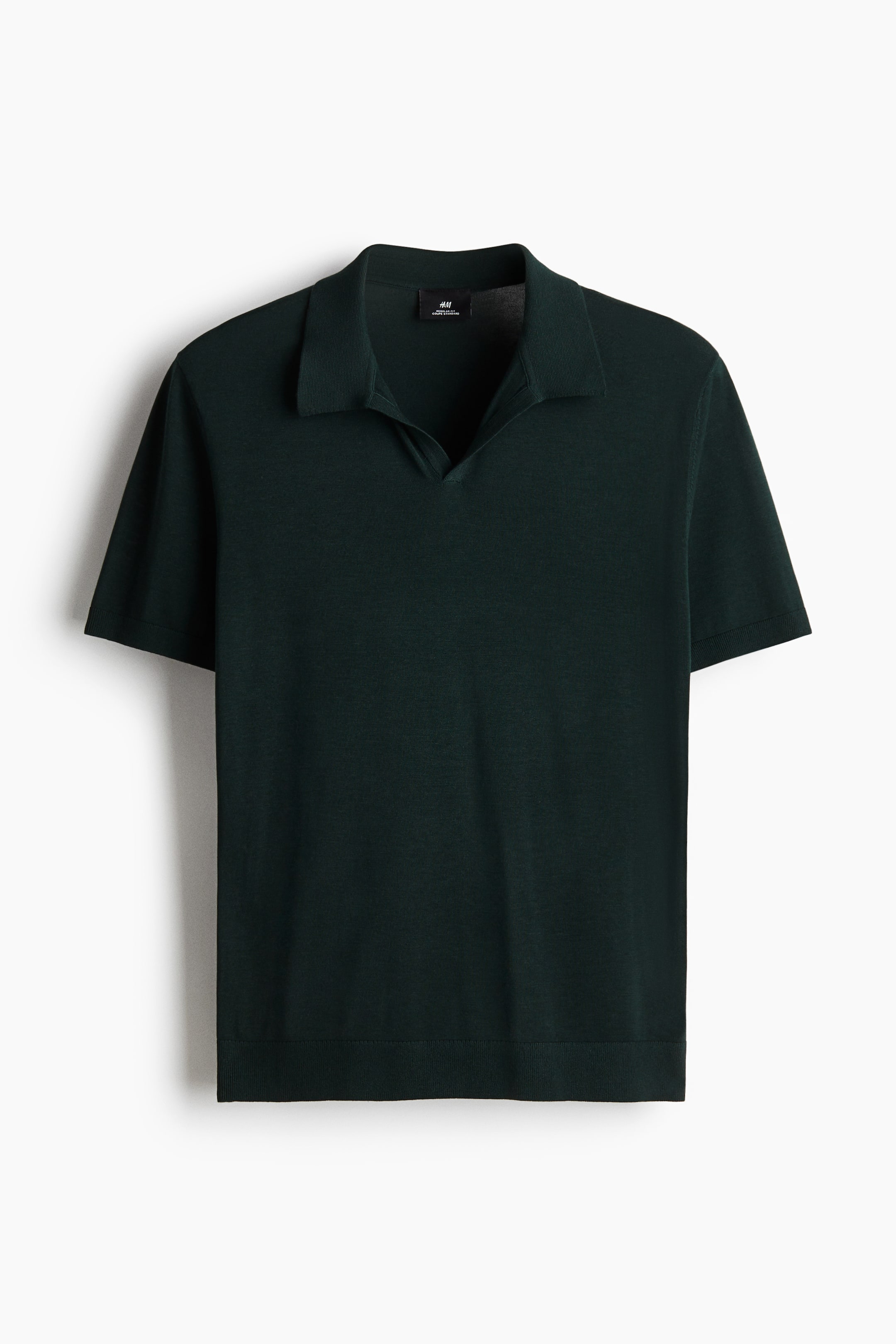 Regular-fit, fine-knit polo shirt in a cotton blend with a comfortable, classic silhouette. Open collar, short sleeves, and ribbing at cuffs and hem.