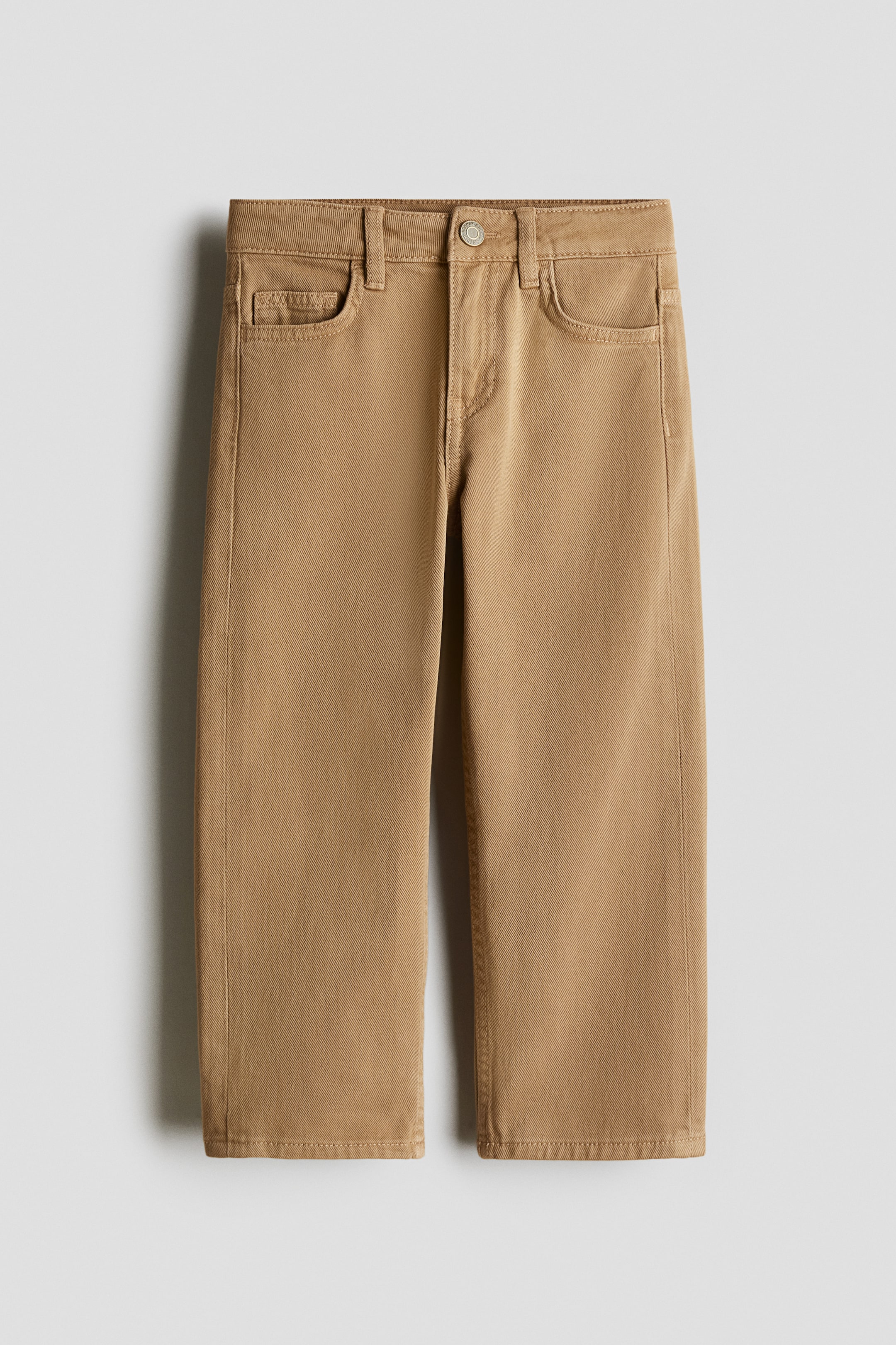 5-pocket pants in soft cotton twill. Loose fit through hip and thigh. Adjustable elastic at waistband, zip fly with snap fastener, and straight legs.