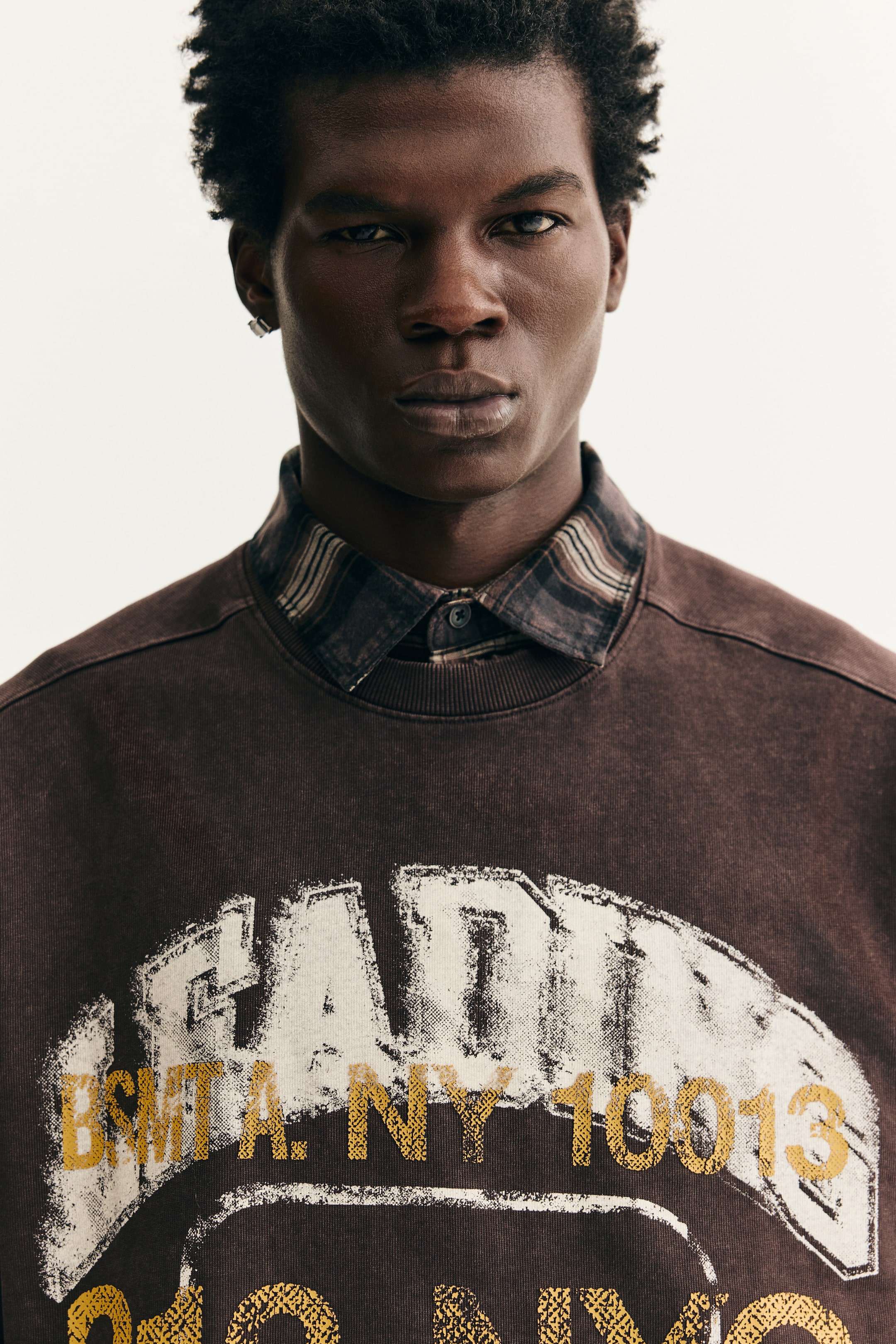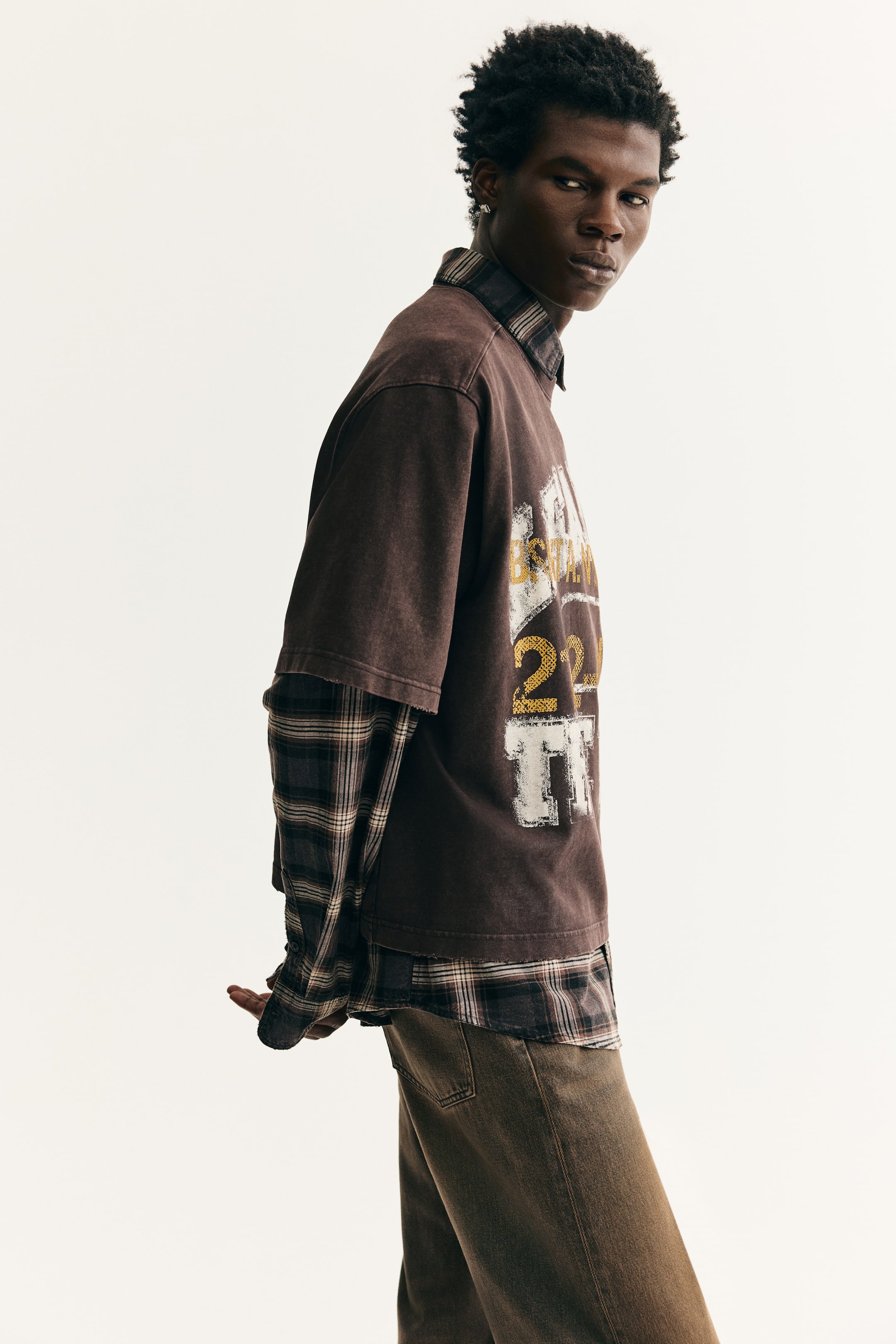 Boxy, oversized cropped T-shirt in cotton jersey with a printed design and subtly rugged edges. Extra-loose silhouette. Ribbed round neck, dropped shoulders, and a straight-cut hem.