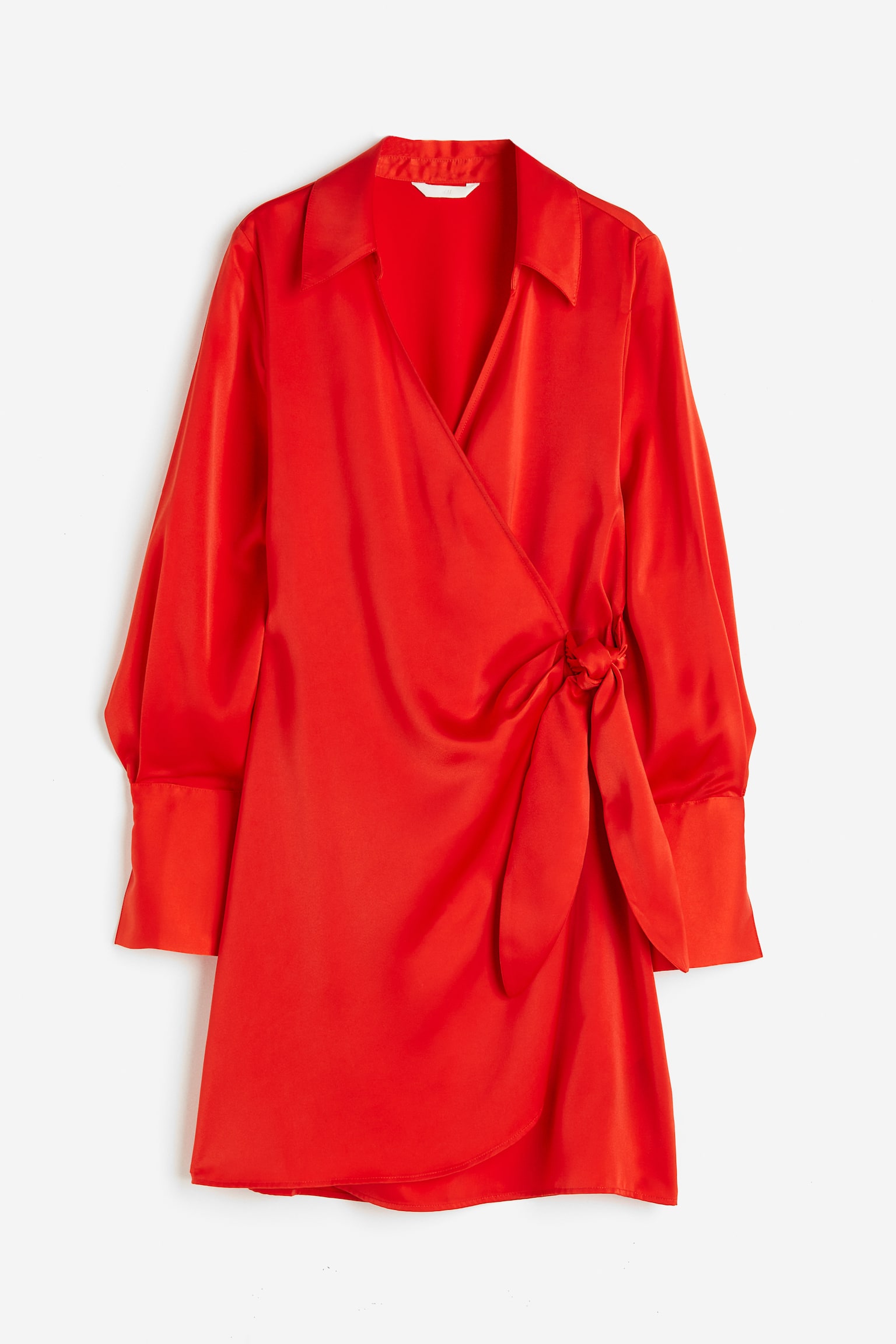 Guardar en favoritos Vestido de satén con cinturón de anudar Vestido de satén con cinturón de anudar