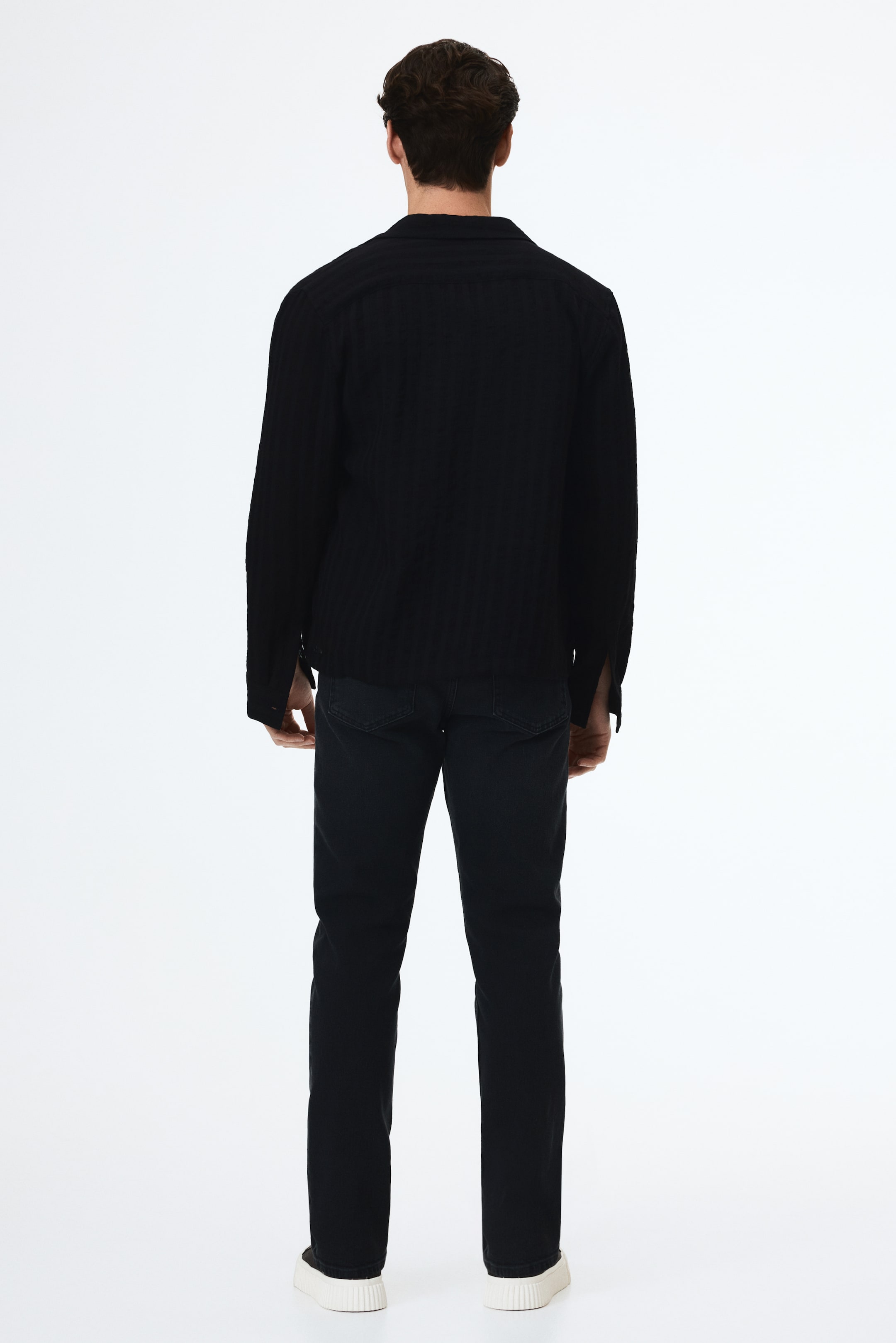 Vaquero de cinco bolsillos en denim de algodón con ligero stretch para una comodidad óptima. Modelo de cintura estándar con cierre de cremallera. Corte estándar de cintura a bajo con pernera recta ligeramente holgada. Denim para mucho tiempo.