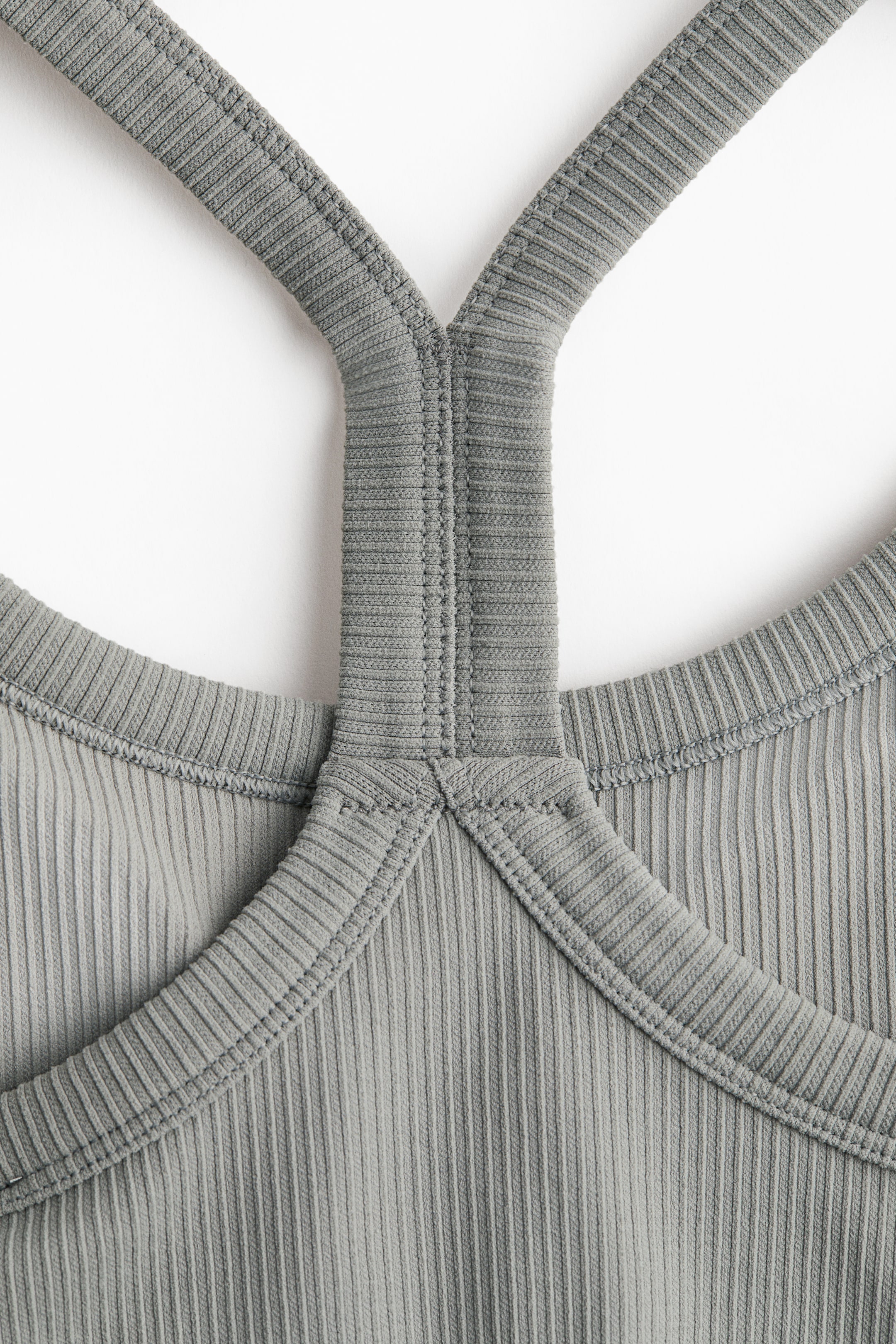 Sujetador de deporte en tejido funcional acanalado confeccionado con DryMove™, que ayuda a absorber el sudor y mantener el frescor para una mayor comodidad al hacer ejercicio. Modelo con tirantes finos, espalda olímpica y copas forradas con relleno extraíble que moldean el busto y proporcionan un buen ajuste. Bajo en punto elástico de canalé. Sujeción media para ejercicio de intensidad moderada. Diseñado con el mínimo de costuras para un ajuste más cómodo y una mayor movilidad.