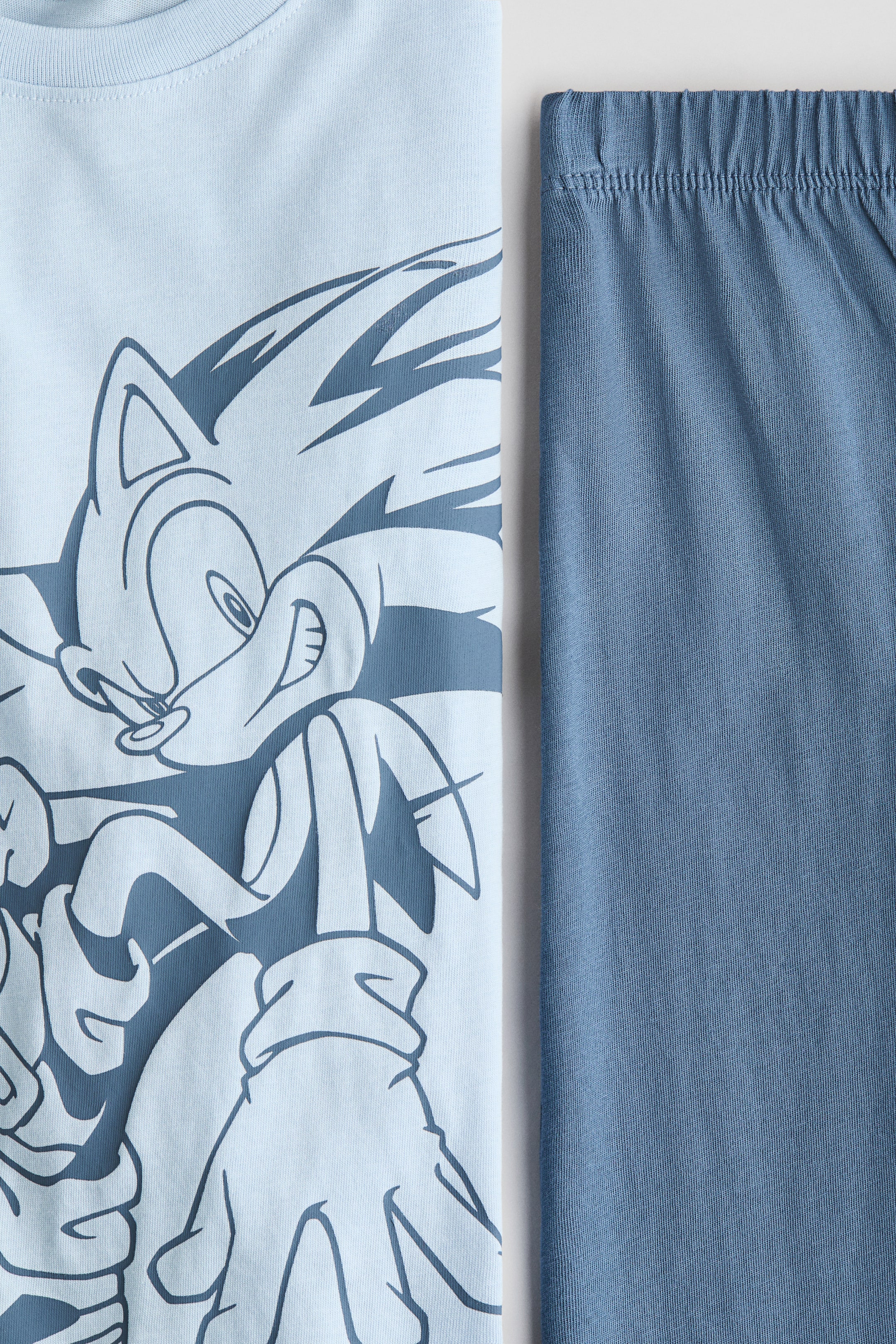 Pijama estampado de dos piezas en punto suave de algodón. Camiseta de manga larga con cuello y puños de canalé. Pantalón con elástico revestido suave en la cintura y puños de canalé.