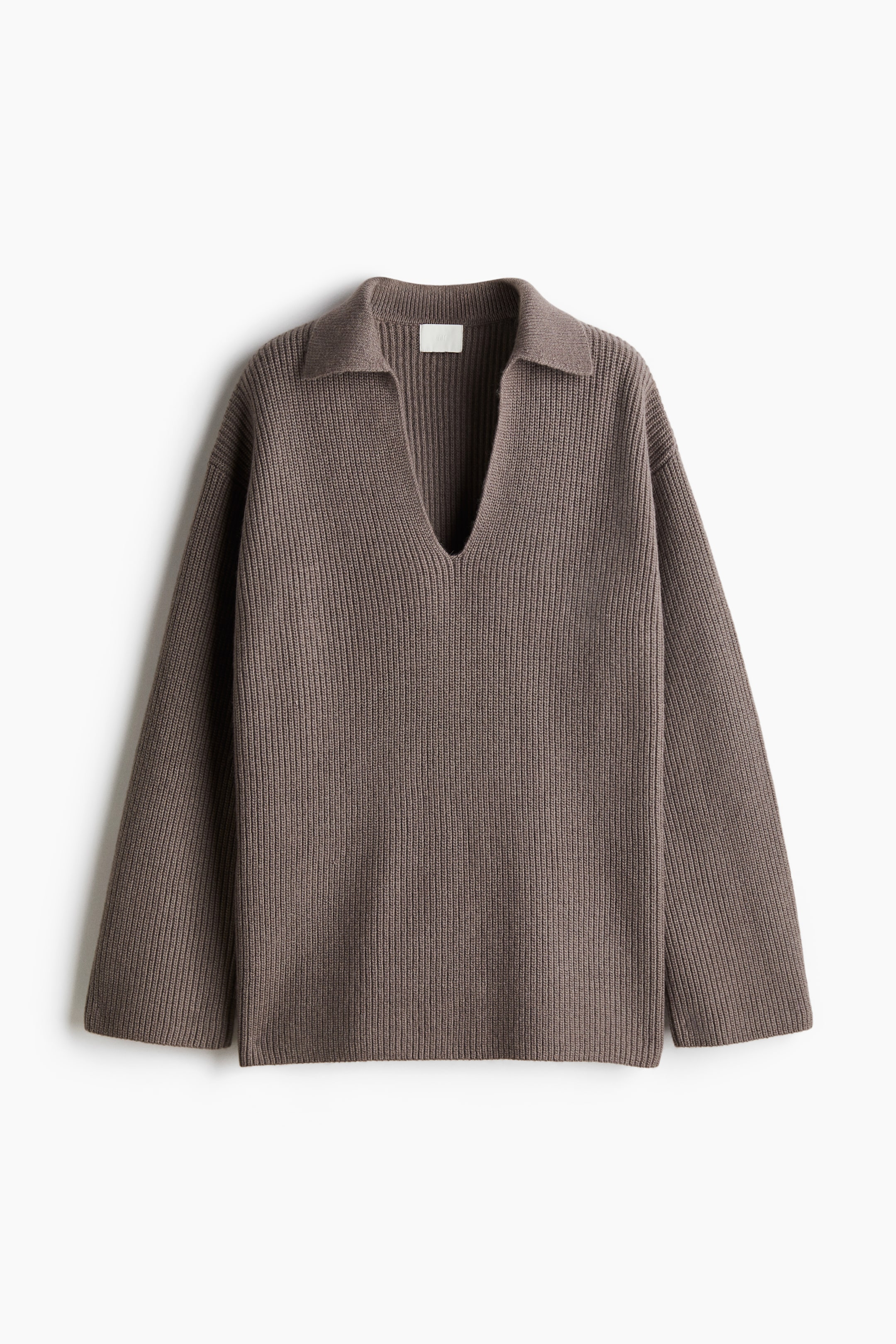 Jersey en punto de canalé. Modelo de corte holgado con cuello, abertura en V delante y hombros marcadamente caídos.