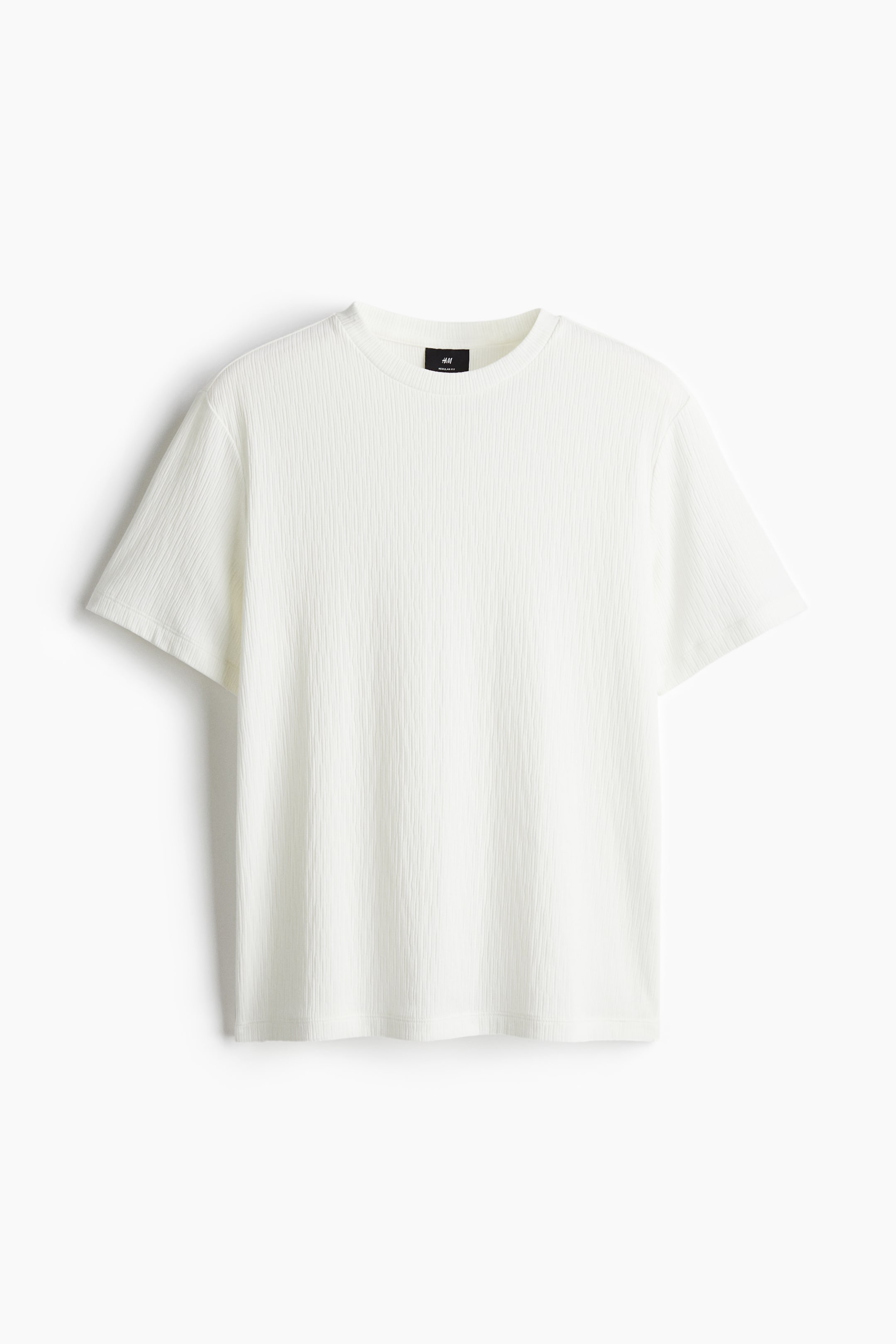 Camiseta en punto de peso medio de mezcla de algodón. Modelo con cuello redondo y bajo recto. Corte estándar para una silueta clásica y cómoda.