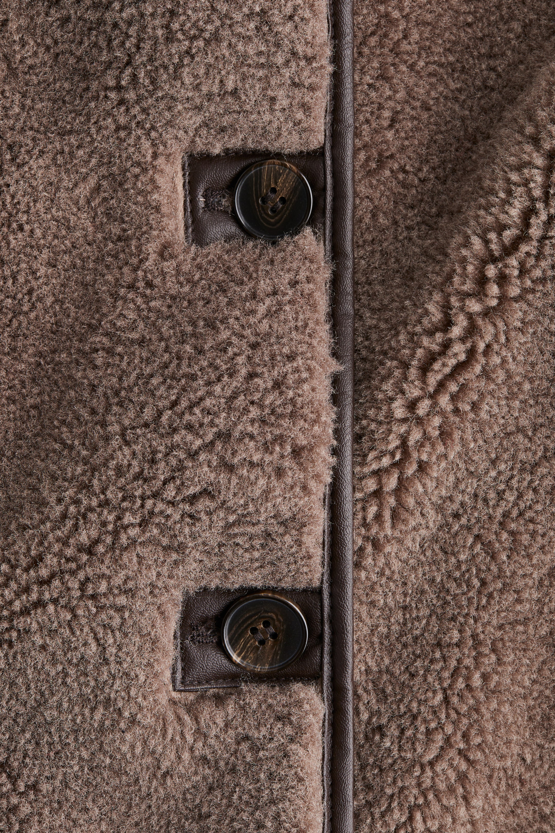 Chaqueta en tejido suave efecto pelo con detalles revestidos. Modelo con cuello redondo, botones delante y bolsillos laterales insertados. Forrada.