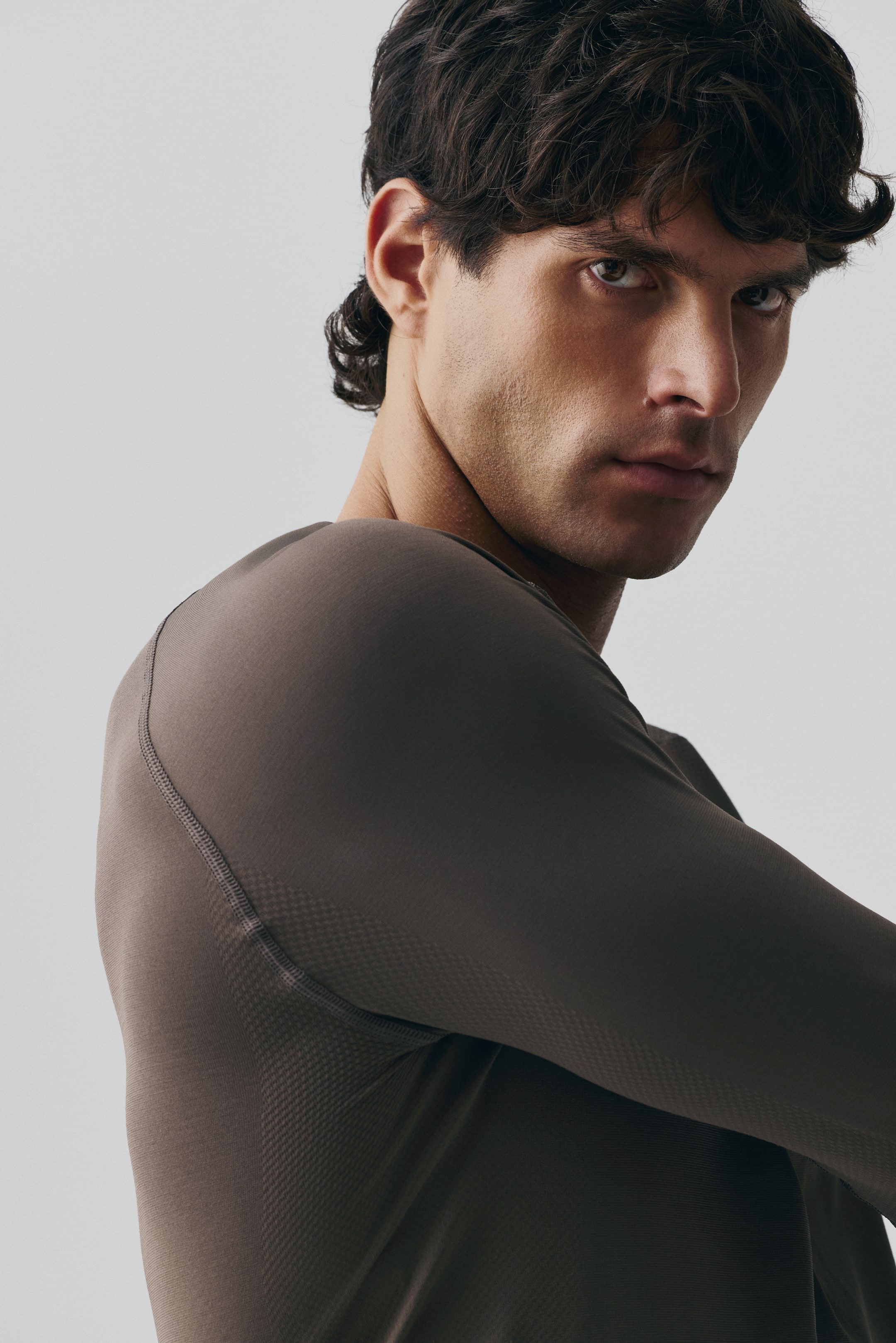 Camiseta de deporte en tejido funcional y transpirable confeccionado con DryMove™, que ayuda a absorber el sudor y mantener el frescor para una mayor comodidad al hacer ejercicio. Modelo con cuello redondo, mangas raglán largas y costuras planas antifricción. Muscle Fit – Corte musculoso, estrecho en hombros y mangas para realzar la figura.