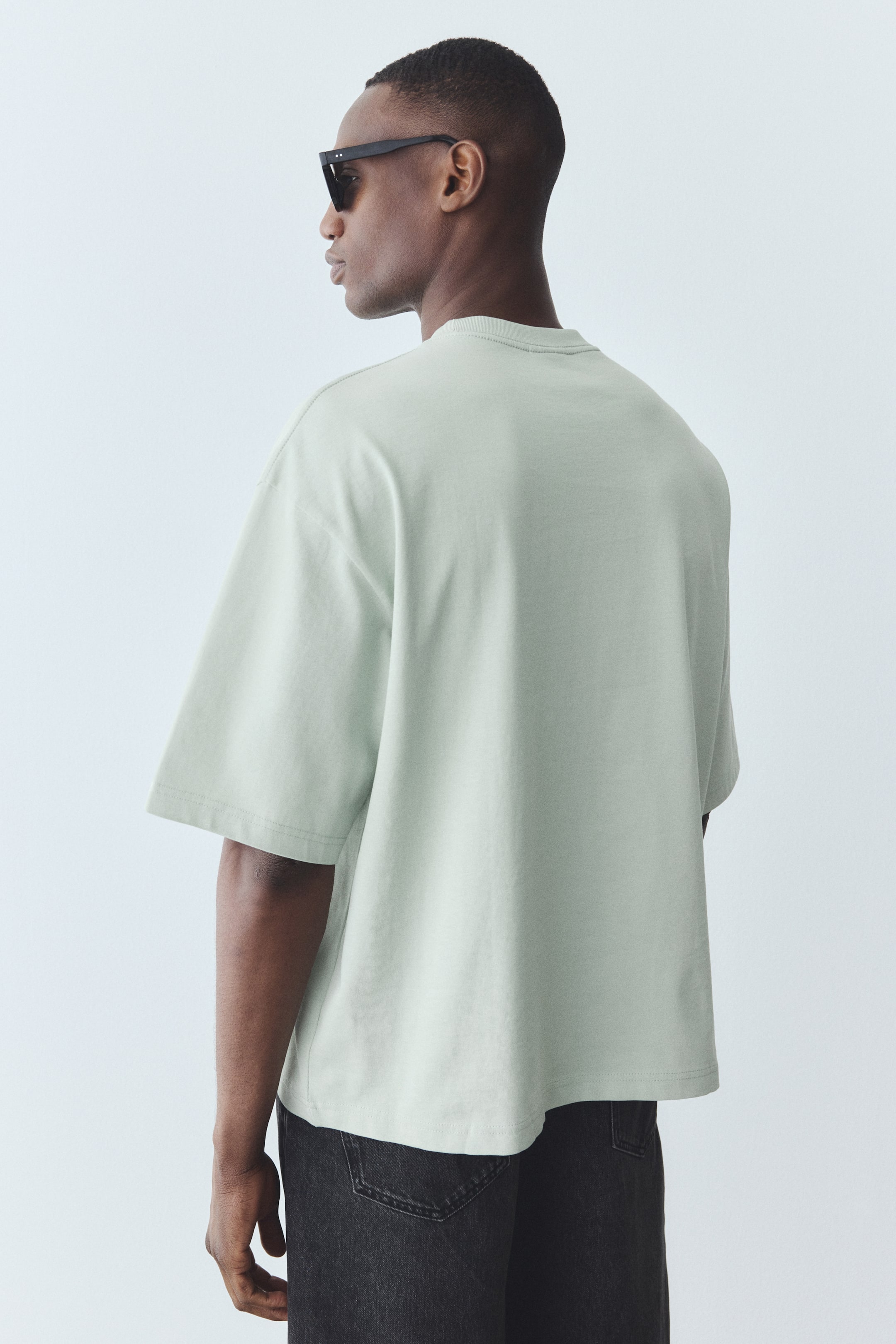 Camiseta en punto de algodón pesado. Modelo con cuello redondo ribeteado, hombros caídos y bajo recto. Corte oversize para una silueta baggy y extraholgada.
