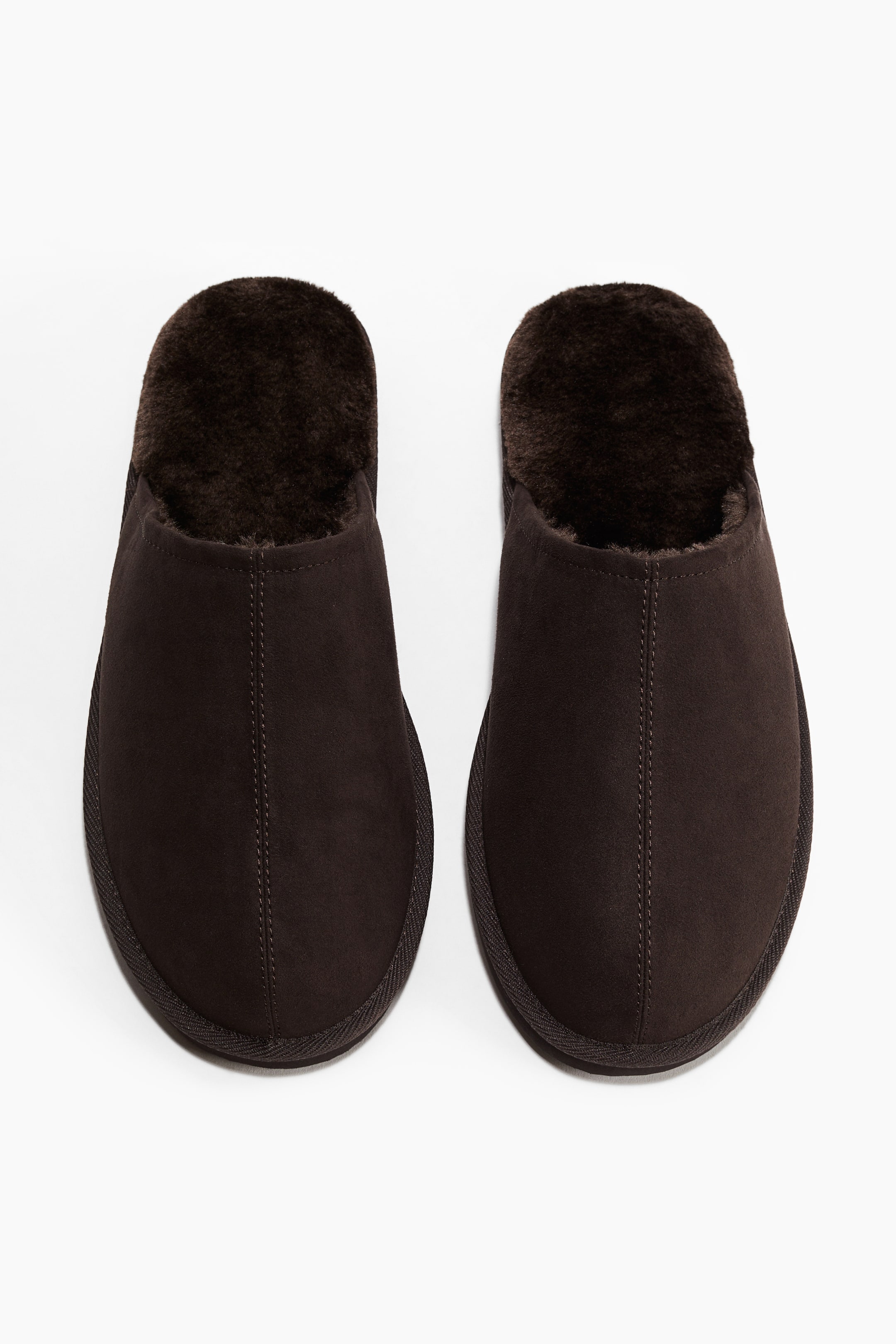 Zapatillas de casa con costura decorativa sobre el empeine y forro en peluche suave. Suela acanalada.