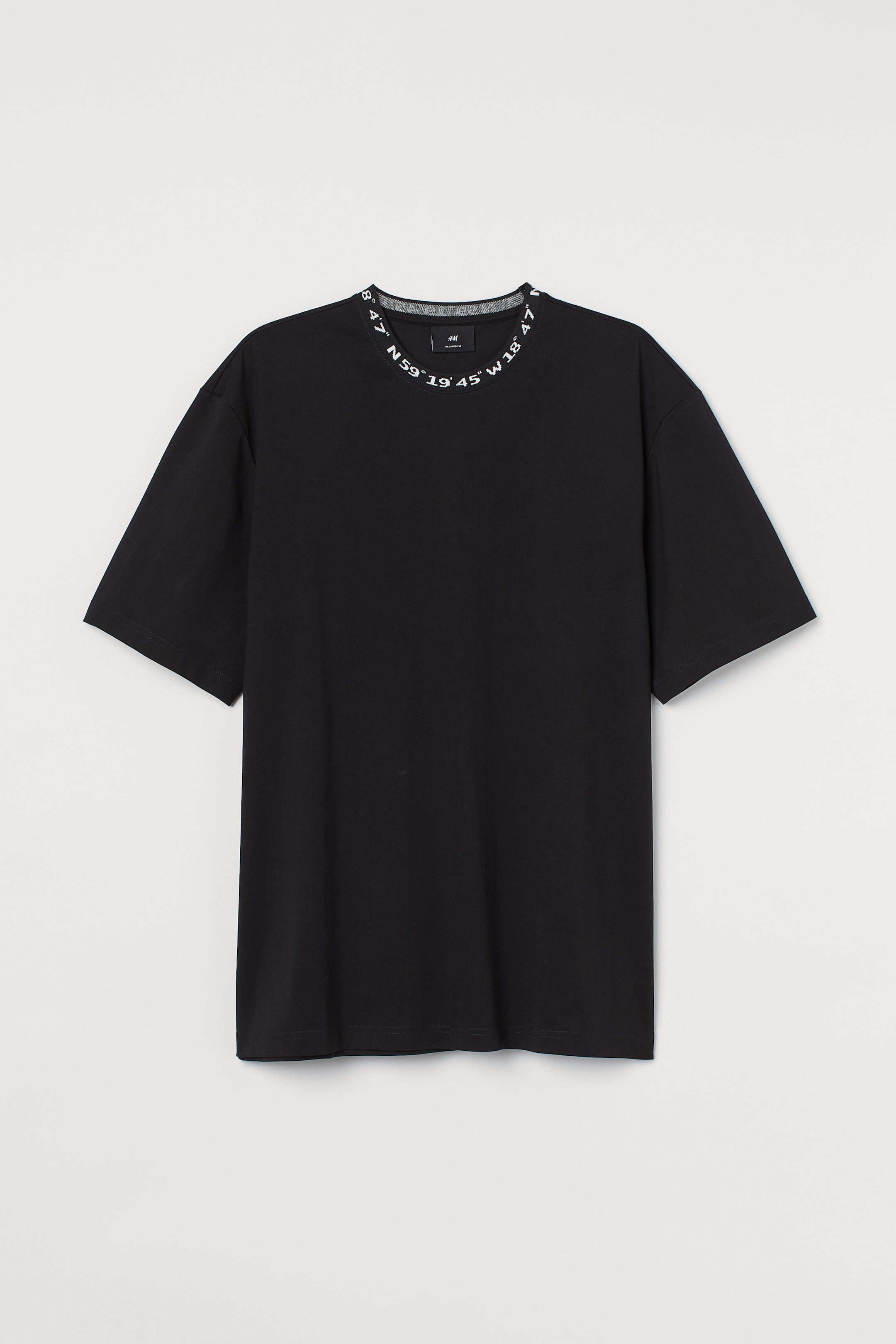 Playera de peso medio en punto de algodón con diseño estampado. Modelo con cuello acanalado redondo, hombros caídos y bastilla recta. Corte amplio para una silueta generosa sin necesidad de ser oversized.