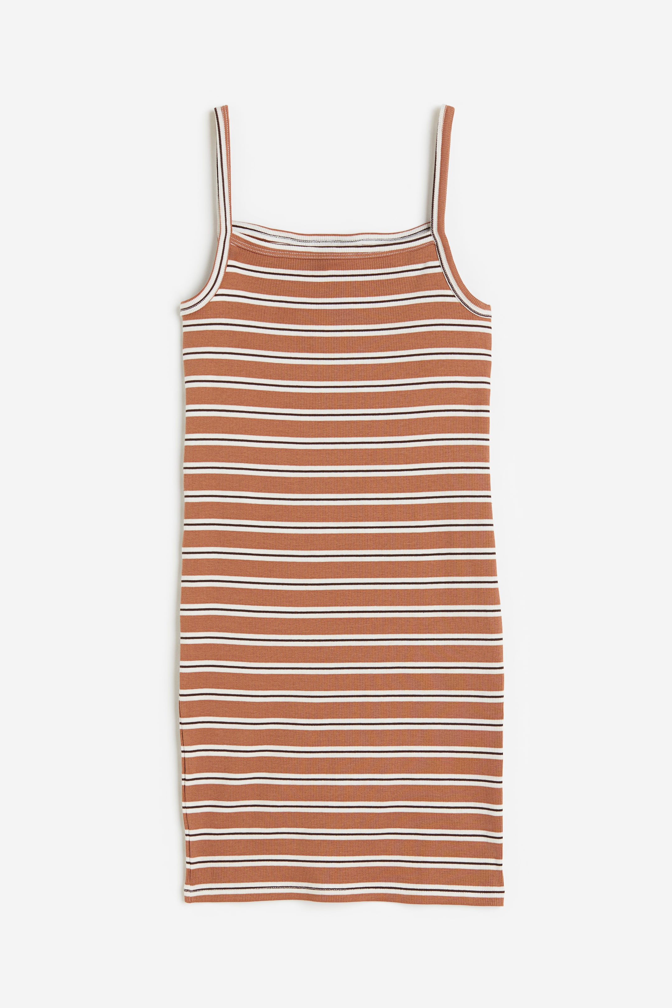 Vestido a la rodilla en punto acanalado de algodón estampado. Modelo con cuello cuadrado y tirantes estrechos. Borde estrecho alrededor del cuello y sisas.