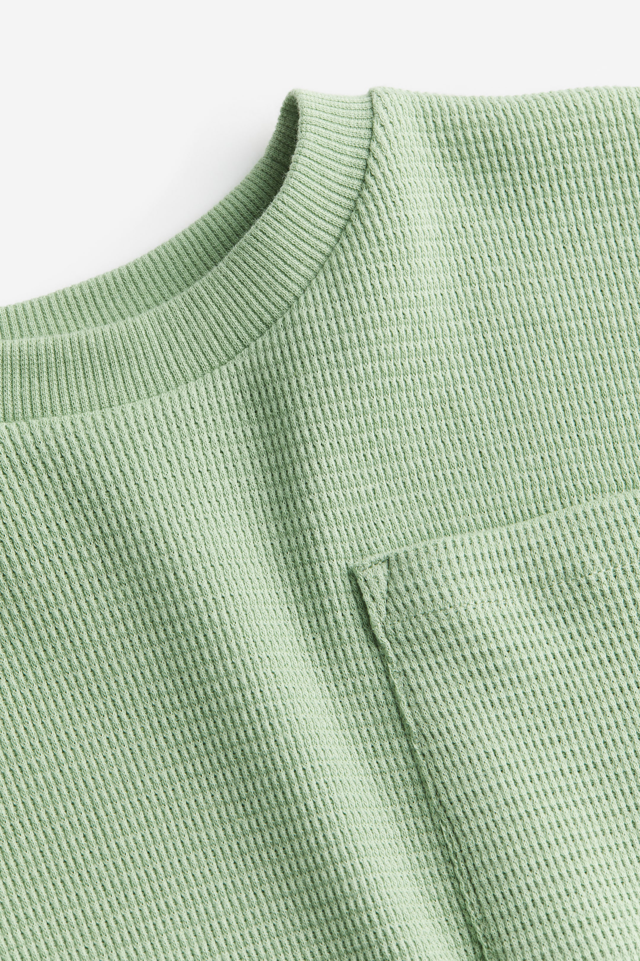 Playera de corte amplio en punto gofrado de algodón. Modelo con cuello acanalado redondo, hombros caídos y un bolsillo superior abierto.