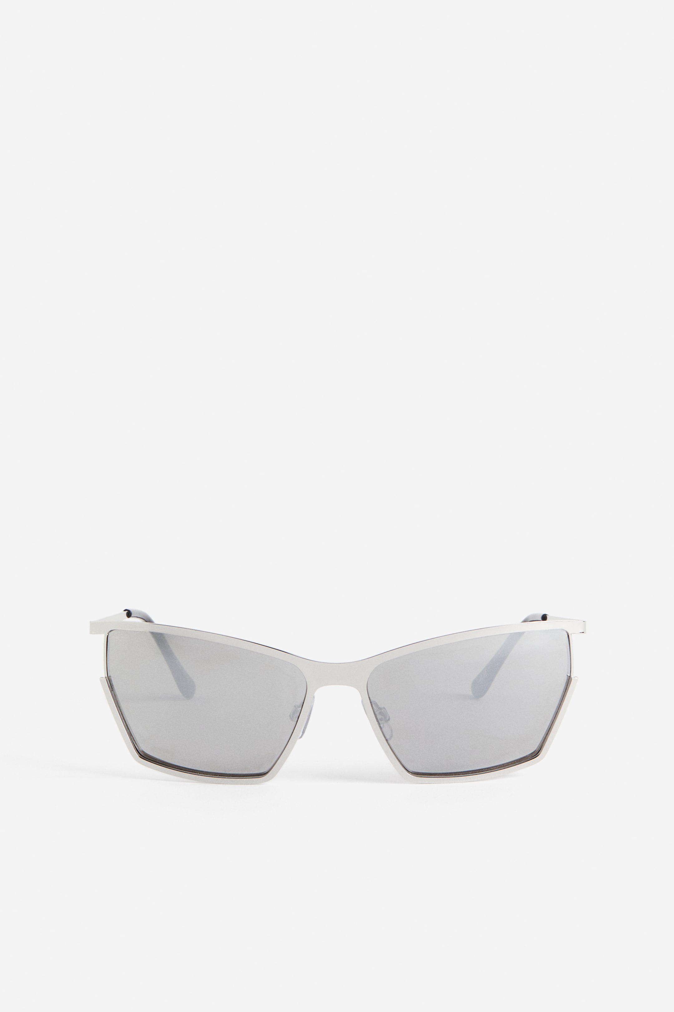 Lentes de sol con armazón y patillas en metal. Almohadillas ajustables y lentes de plástico tintado con protección UV.
