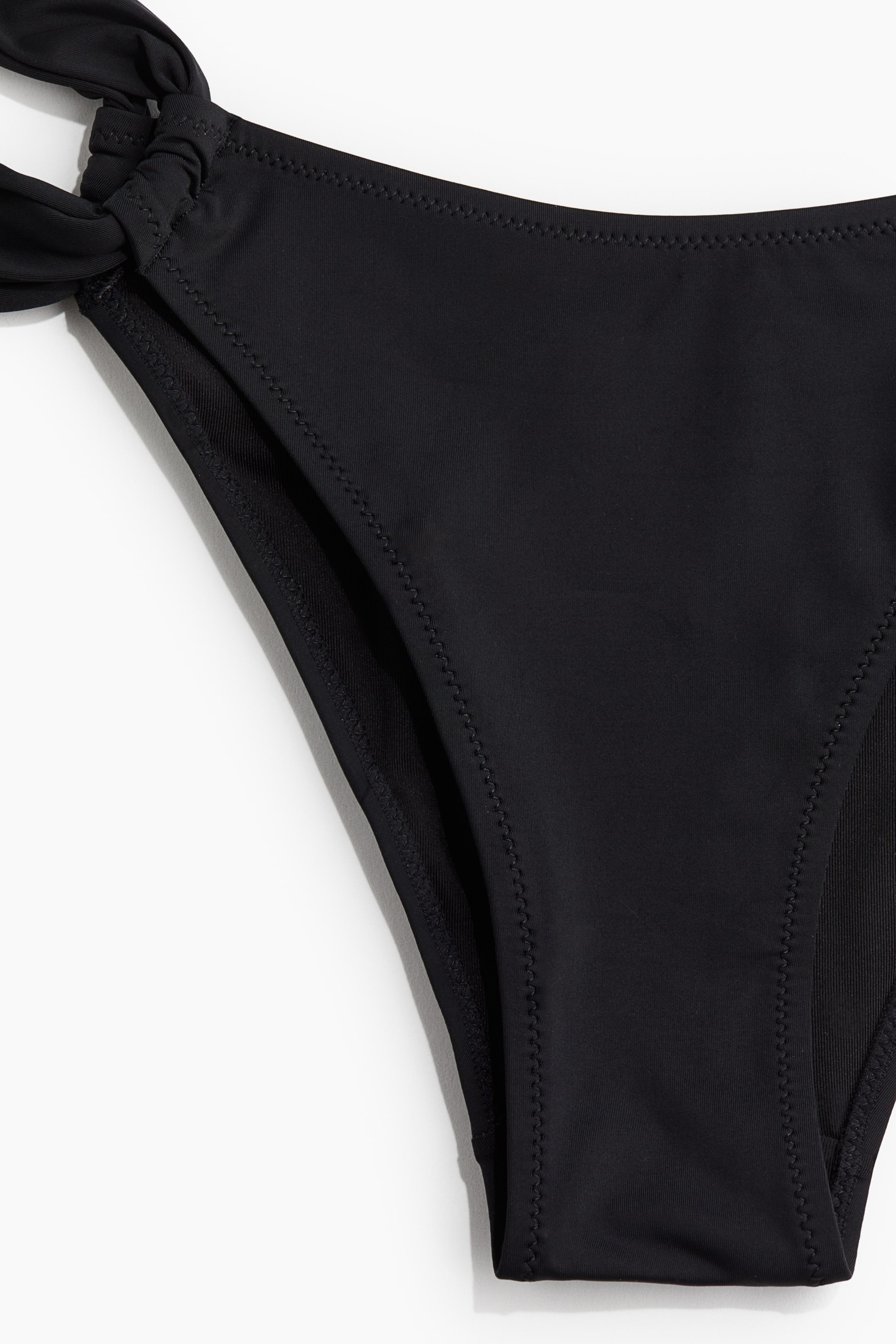 Bragas de bikini completamente forradas. Talle medio con parte posterior semicubierta. Modelo con lazos dobles que se entrelazan en las presillas laterales.