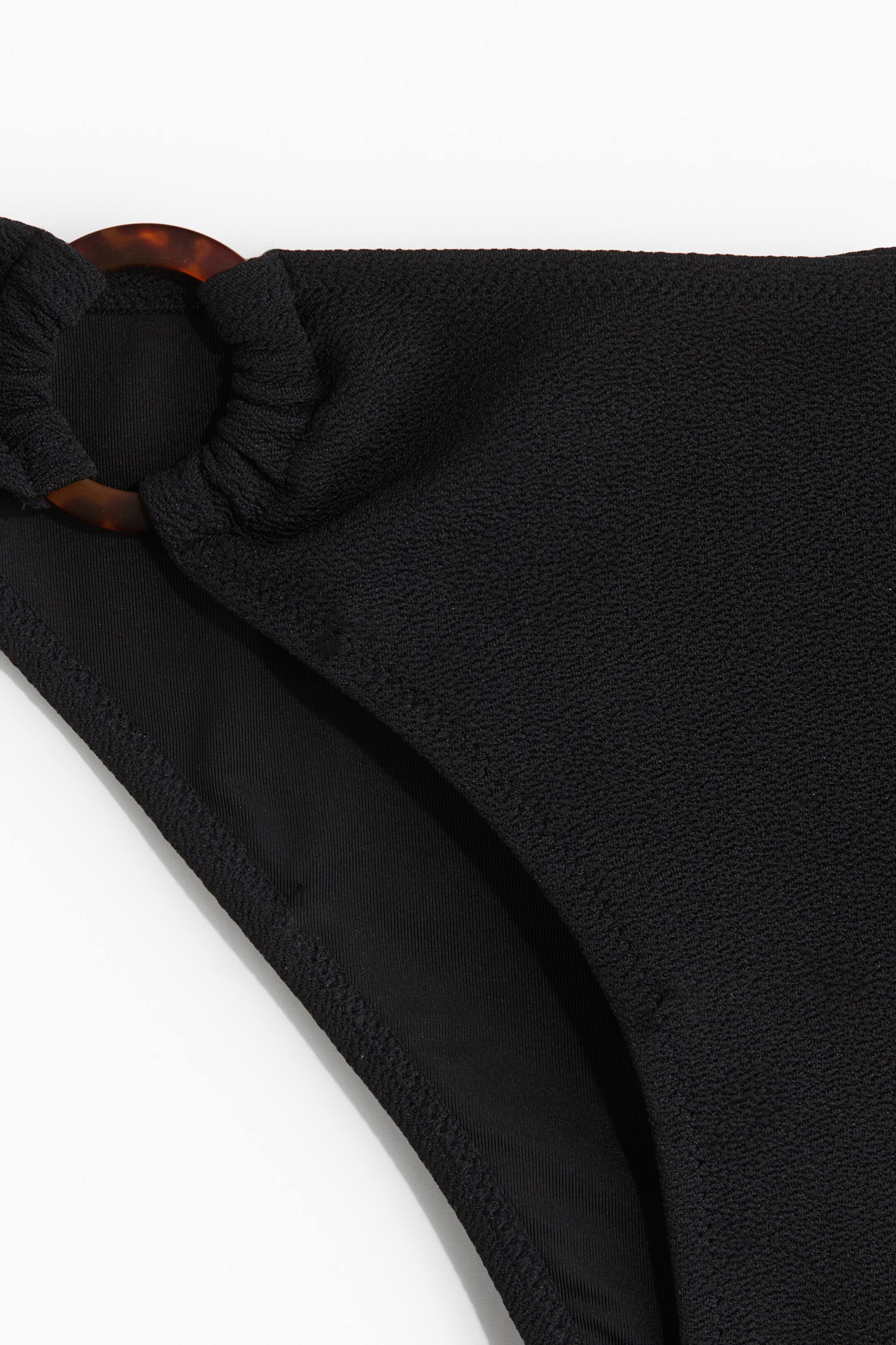 Bragas de bikini completamente forradas. Modelo de talle medio con anillo forrado en un lateral. Parte posterior semicubierta.
