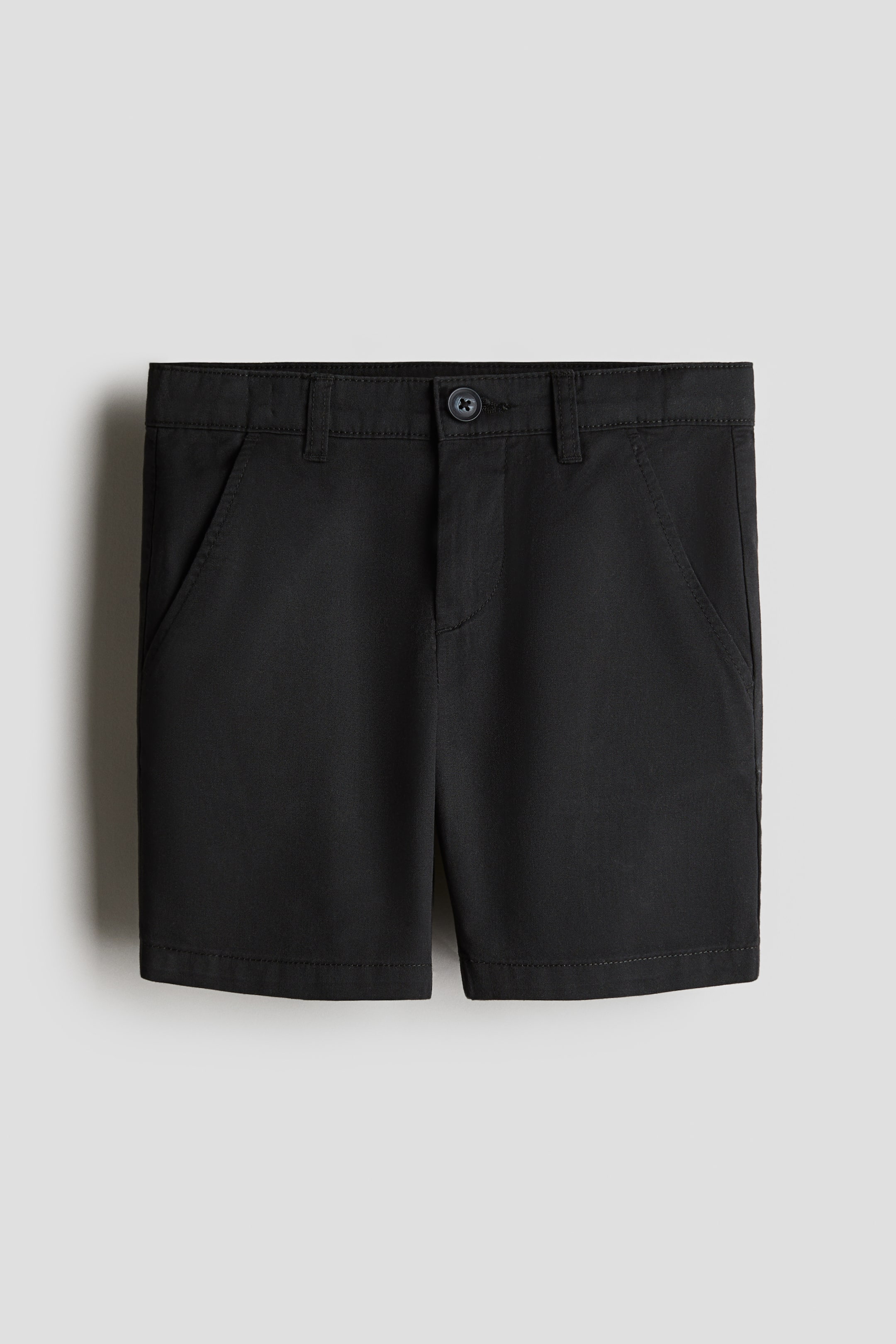 Shorts en sarga suave de algodón. Modelo con elástico ajustable en la cintura y cierre de zíper con botón. Bolsillos laterales y un bolsillo decorativo de ojal en la parte posterior.