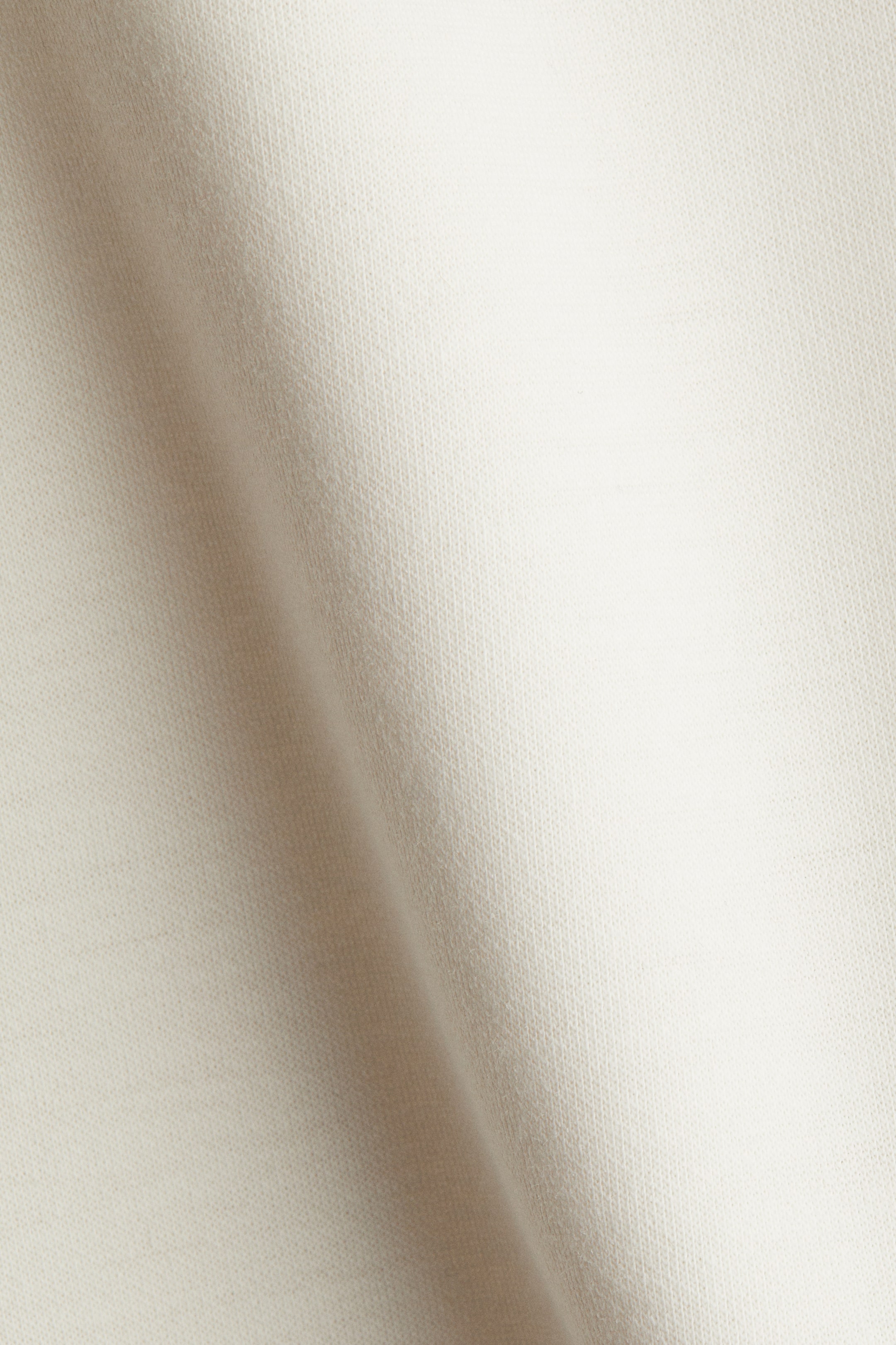 Top en tela scuba suave. Modelo de escote en V con cintura ajustada para favorecer la figura. Hombros caídos y mangas largas con puños ajustados.