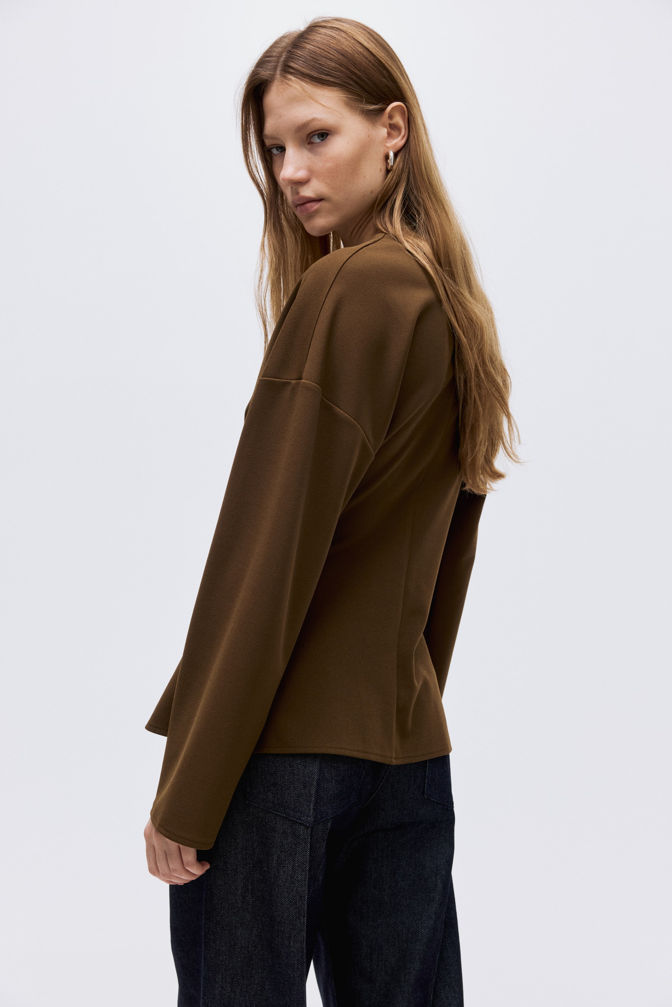 Top de manga larga en punto grueso. Modelo de escote en V con botones al frente y hombros caídos.