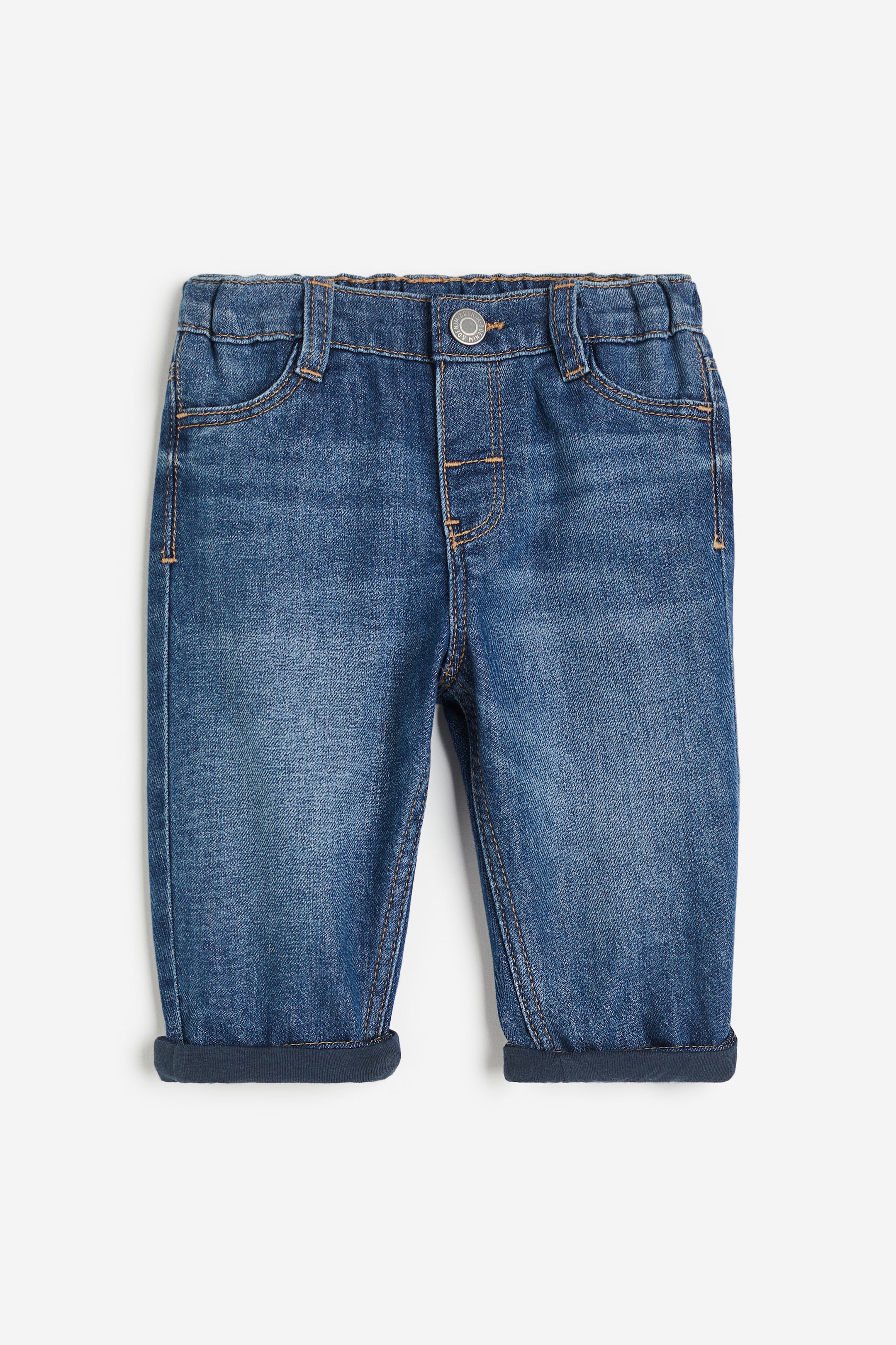 Farkut pestyä denimiä. Klassinen istuvuus lantion, reisien ja pohkeiden kohdalla. Istuvuuden vatsan kohdalla takaava säädettävä joustovyötärö ja painonapillinen valesepalus. Sivu- ja takataskut. Pehmeä trikoovuori.