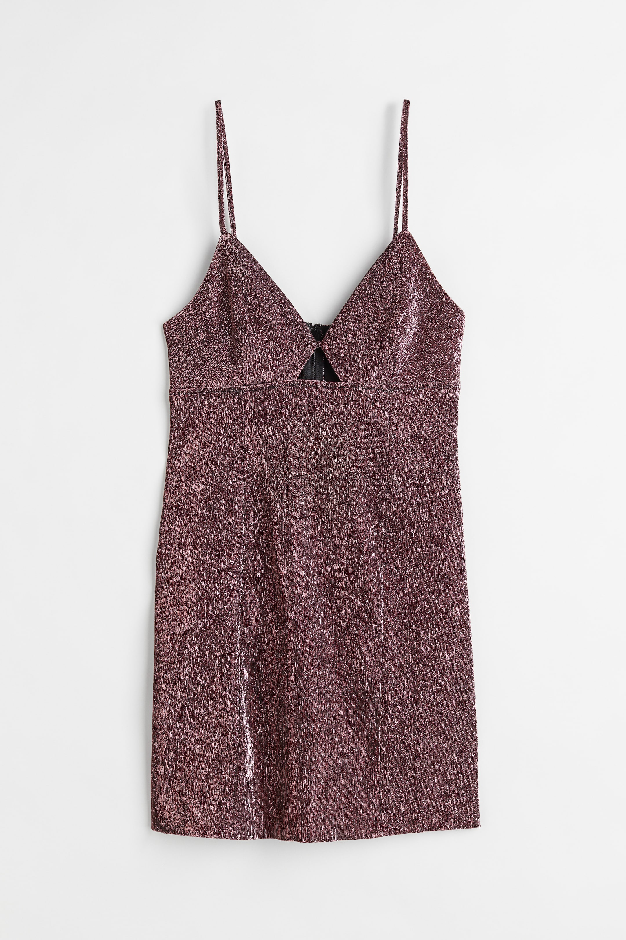 Robe courte tissée. Coupe ajustée avec encolure en V et ouverture devant. Modèle sans manches avec fines bretelles réglables, découpe sous la poitrine et fermeture à glissière discrète dans le dos. Non doublée.