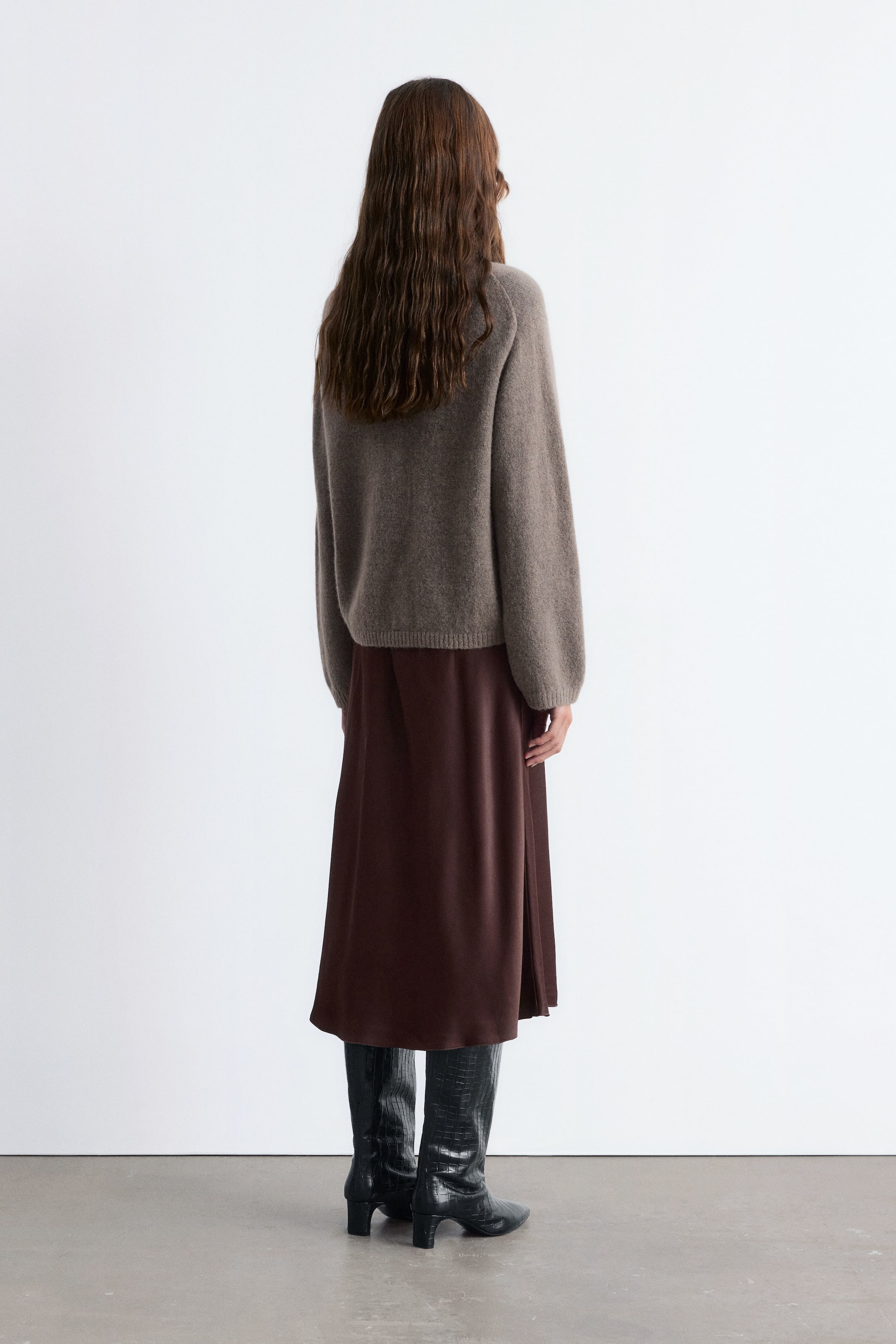 Confectionné dans une maille mélangée de laine d’alpaga d’une douceur exceptionnelle, ce pull offre une sensation de chaleur et de texture. Doté d’une silhouette ample, il possède des épaules tombantes et de larges manches longues. Par ailleurs, il présente un col rond et des finitions côtelés. 37 % Alpaga RAS TE-00047206 37 % Laine RWS TE-00047206 Longueur du pull : 56,5 cm (taille S)