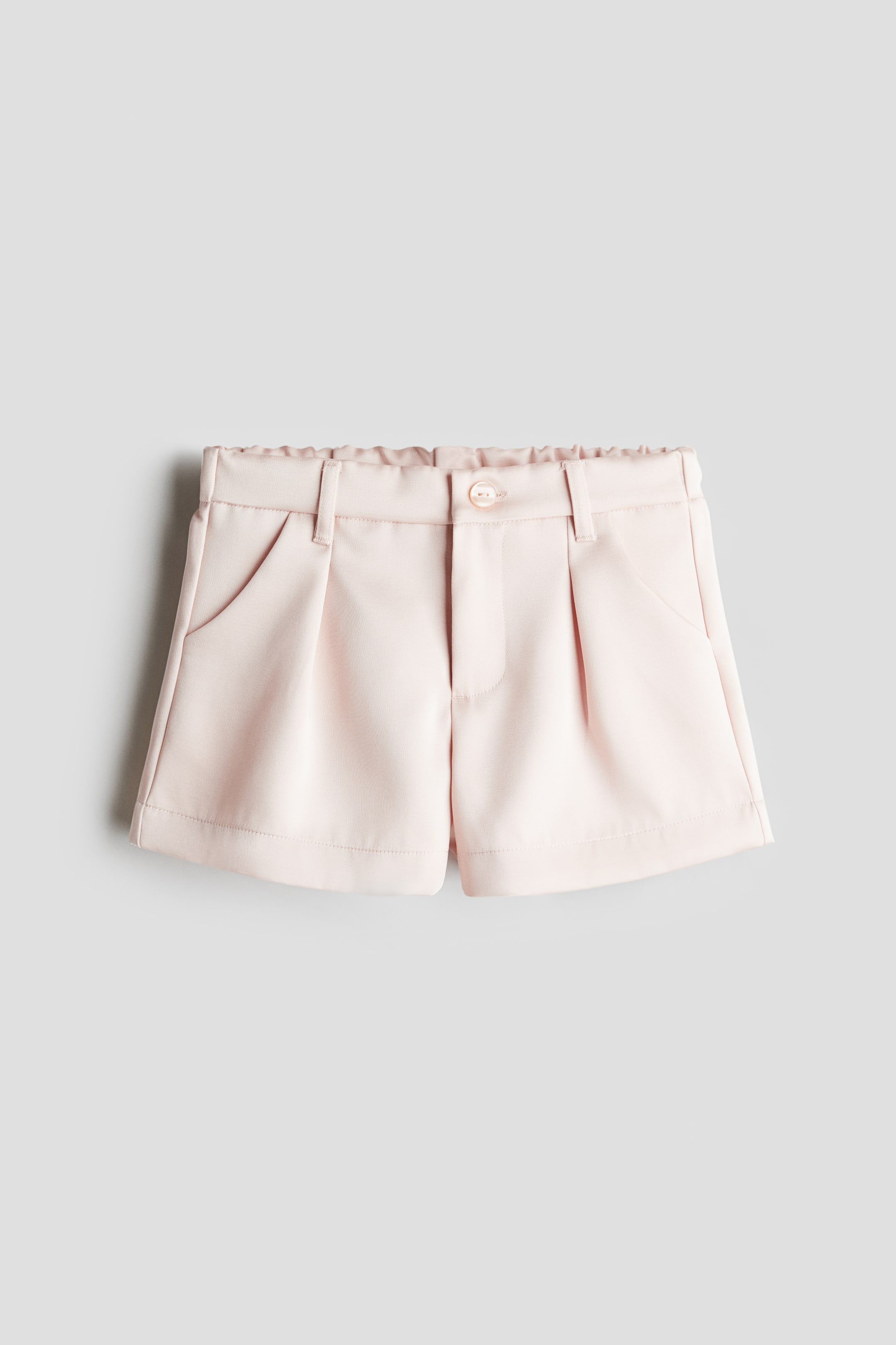 Short en tissu souple. Coupe flottante avec élastique réglable à la taille, pinces devant et braguette zippée surmontée d'un bouton. Poches italiennes. Doublé.