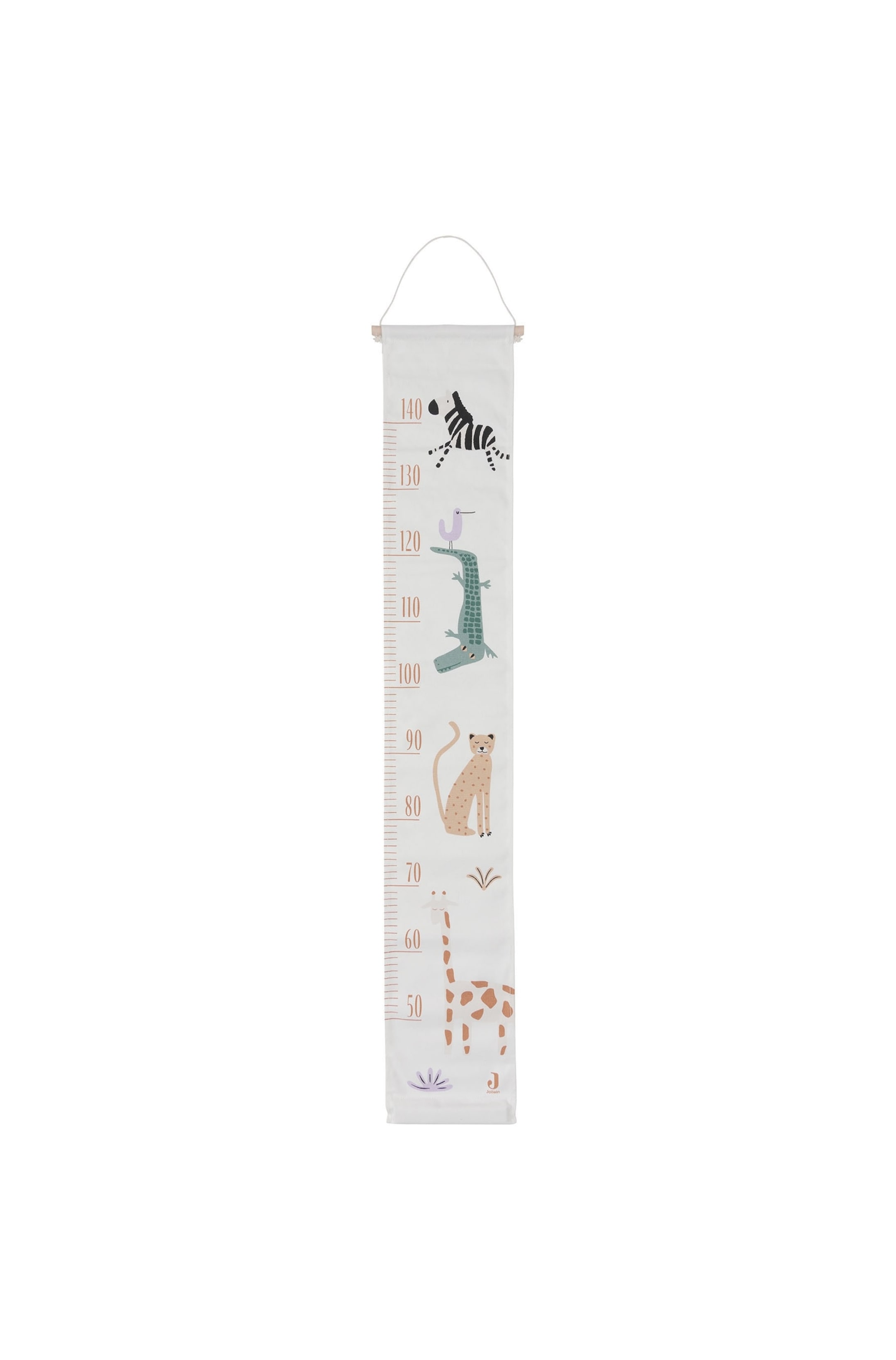 Les enfants adorent suivre leurs propres poussées de croissance et la toise de croissance Jungle Jambo les aide à le faire! Décorée de différents animaux de la jungle, vous pouvez mesurer jusqu'à 140cm la vitesse à laquelle votre enfant grandit. Accrochez facilement la toise de croissance à la fenêtre et ainsi, introduisez du coup le thème de la jungle dans la chambre d'enfant! Un train en bois est également inclus dans l'ensemble. Rien de plus amusant que de charger des wagons et de faire circuler le petit train. Ce train sur le thème de la jungle est accompagné de toutes sortes de petits animaux qui aiment monter dans le petit train: un crocodile, une girafe, un éléphant, un zèbre et un guépard. A coup sûr, votre enfant s'amusera pendant des heures. Dimensions train: 40x11x7cm