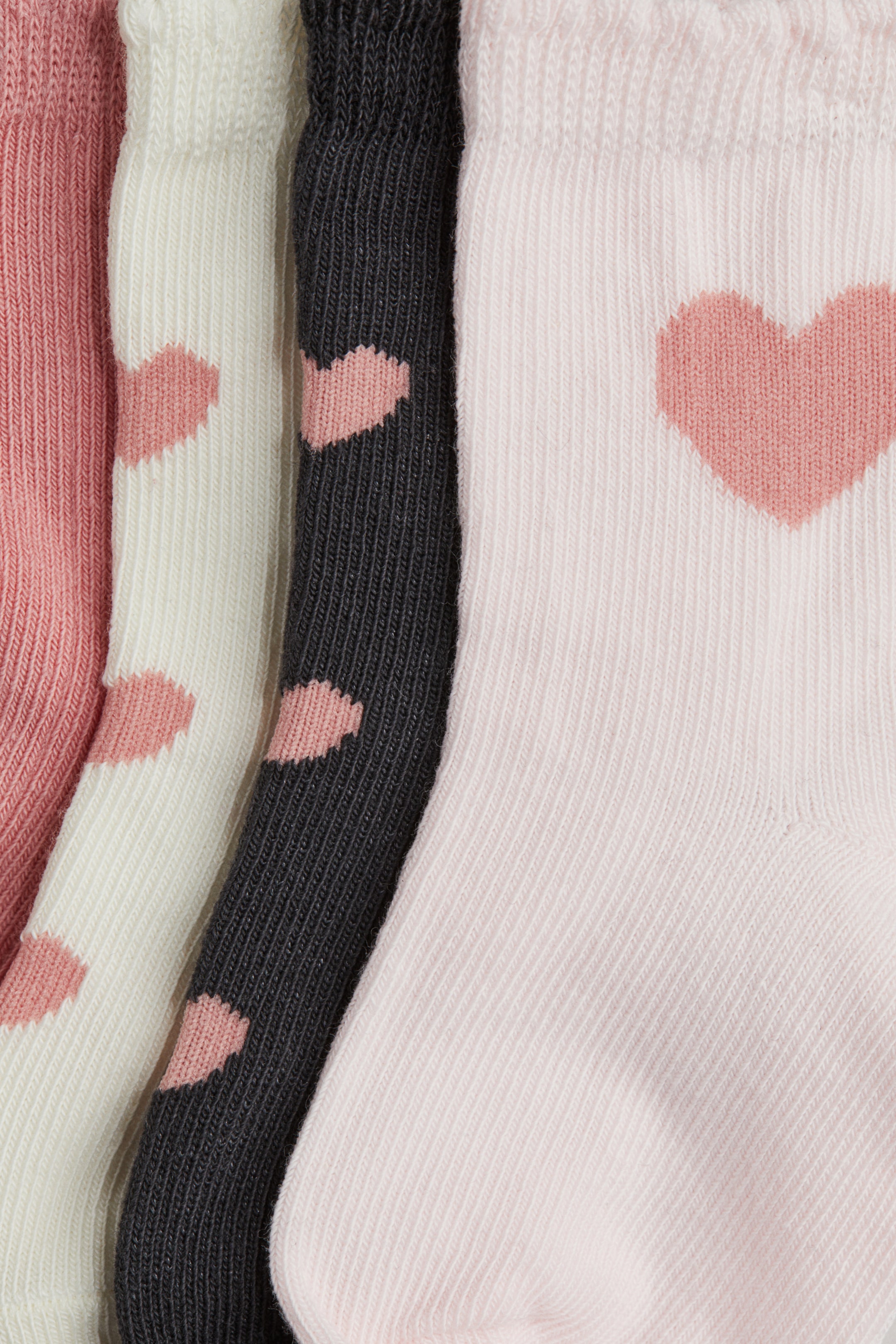 - Rose/gris foncé/blanc/rose clair, À motif, Cœurs