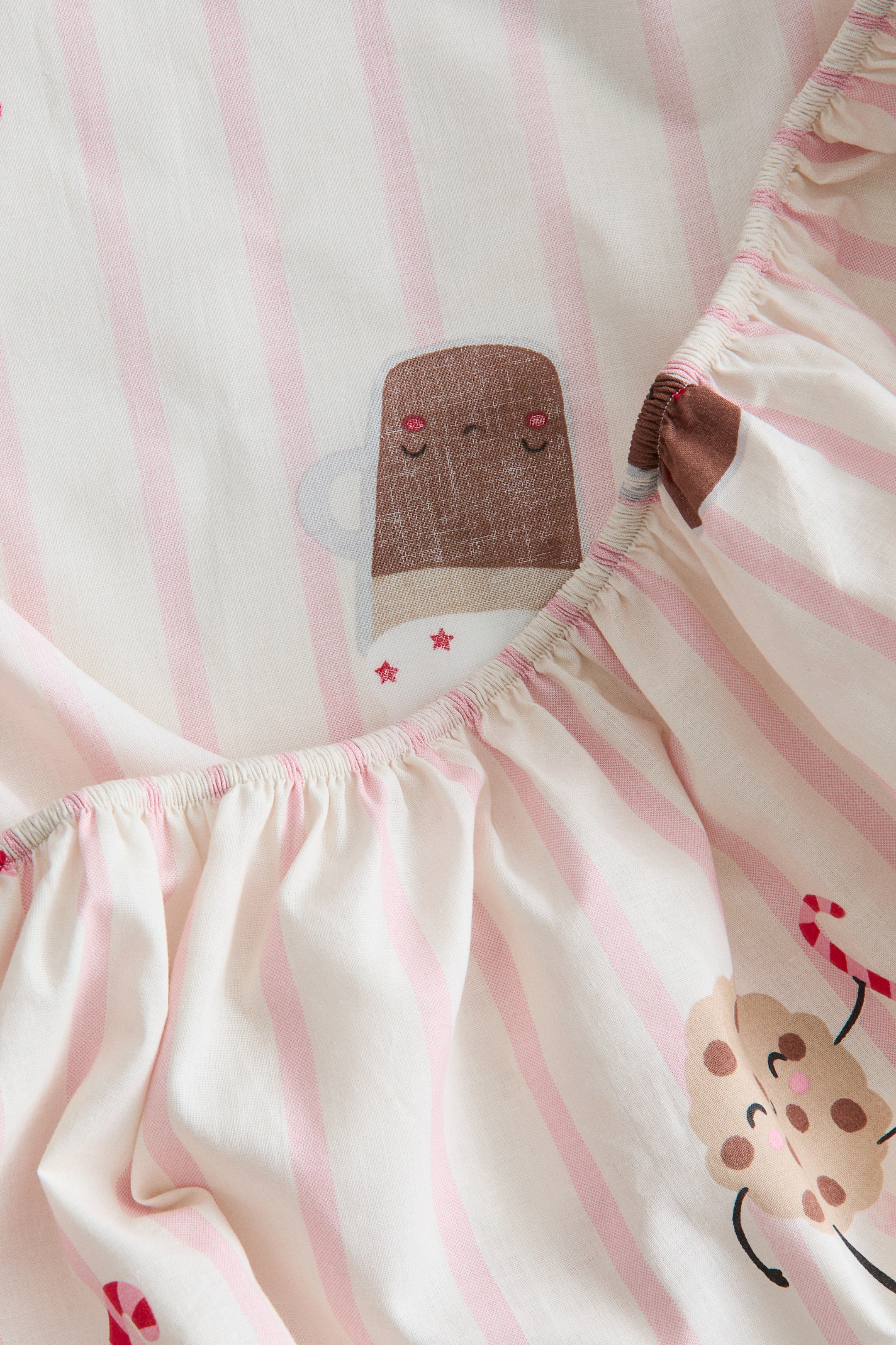 Drap-housse en tissu de coton à motif. Modèle facile à associer avec d'autres couleurs et motifs pour créer de charmantes parures personnalisées. Convient à des matelas de 23 cm d'épaisseur maximum.
