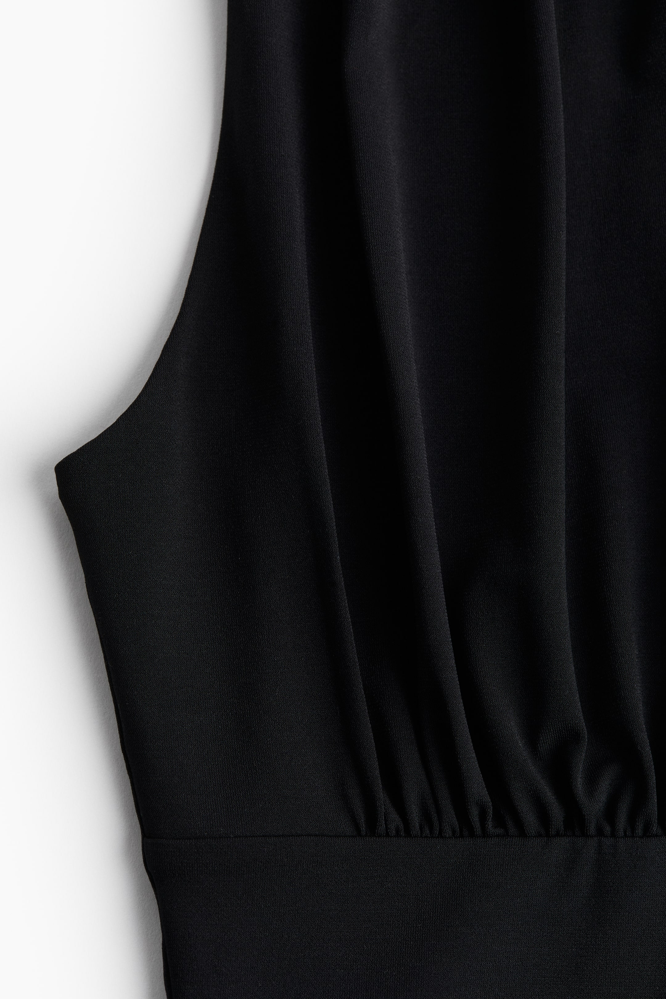 Combiné culotte-ficelle en jersey extensible. Modèle sans manches avec encolure en V plongeante. Fronces sur les épaules et à la taille pour un effet légèrement drapé. Fond fermé par boutons-pression dissimulés.