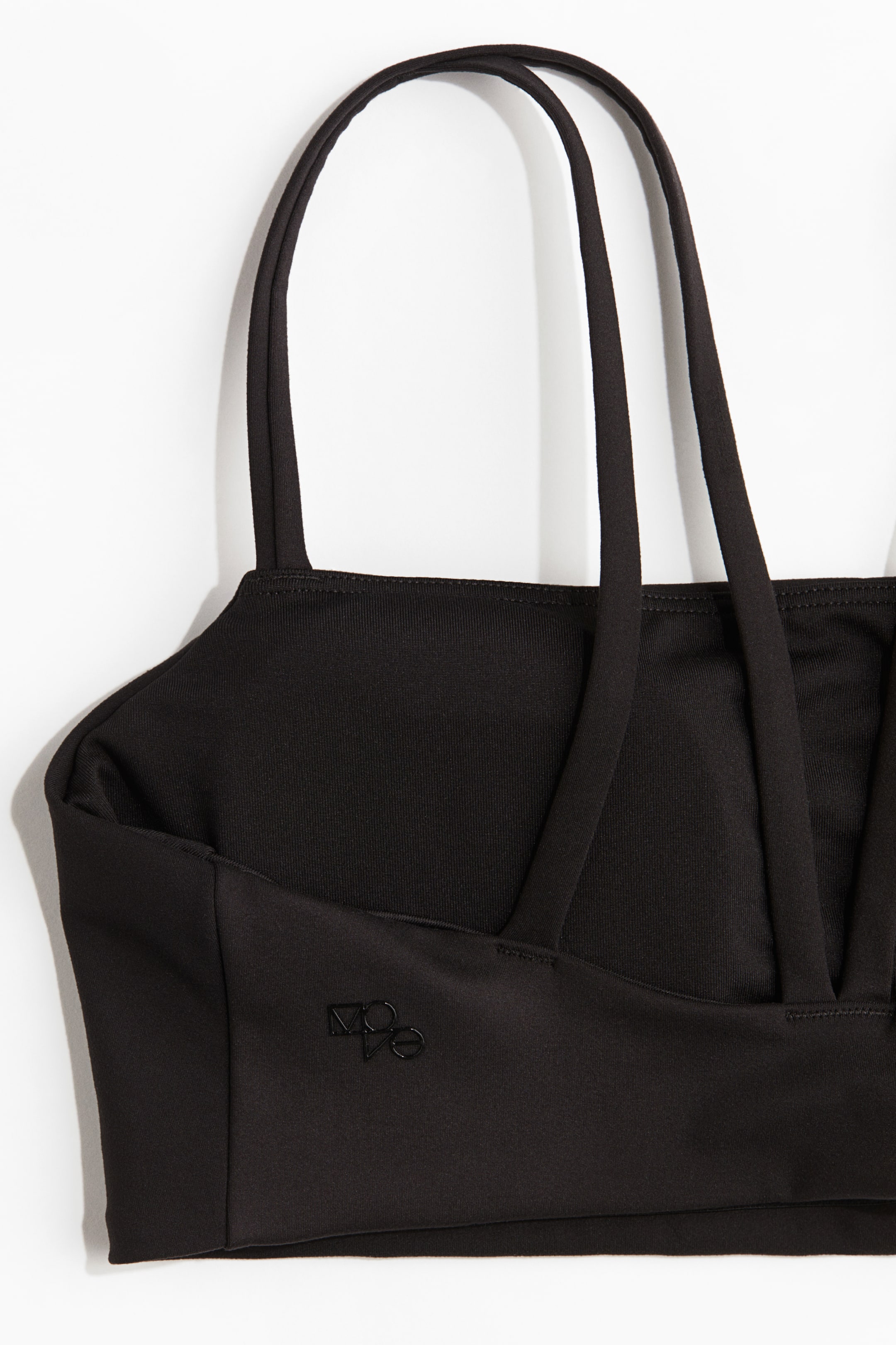 Soutien-gorge de sport en textile technique bénéficiant de la technologie SoftMove🅪 qui offre le summum de la douceur et du confort ainsi qu'un maintien souple pour accompagner tous vos mouvements. Modèle avec bonnets doublés munis de coussinets amovibles qui galbent la poitrine et permettent un meilleur ajustement. Fines bretelles doubles. Sans fermeture. Maintien intermédiaire adapté aux activités d'intensité moyenne.